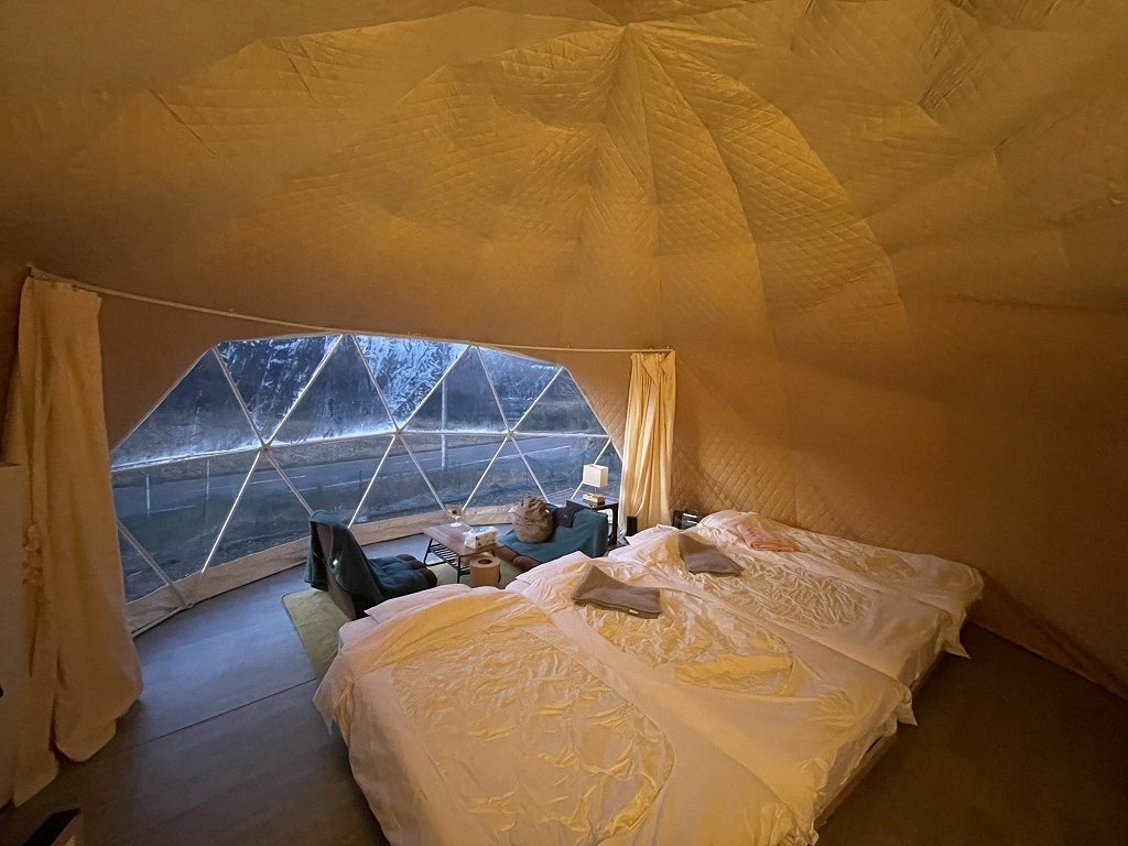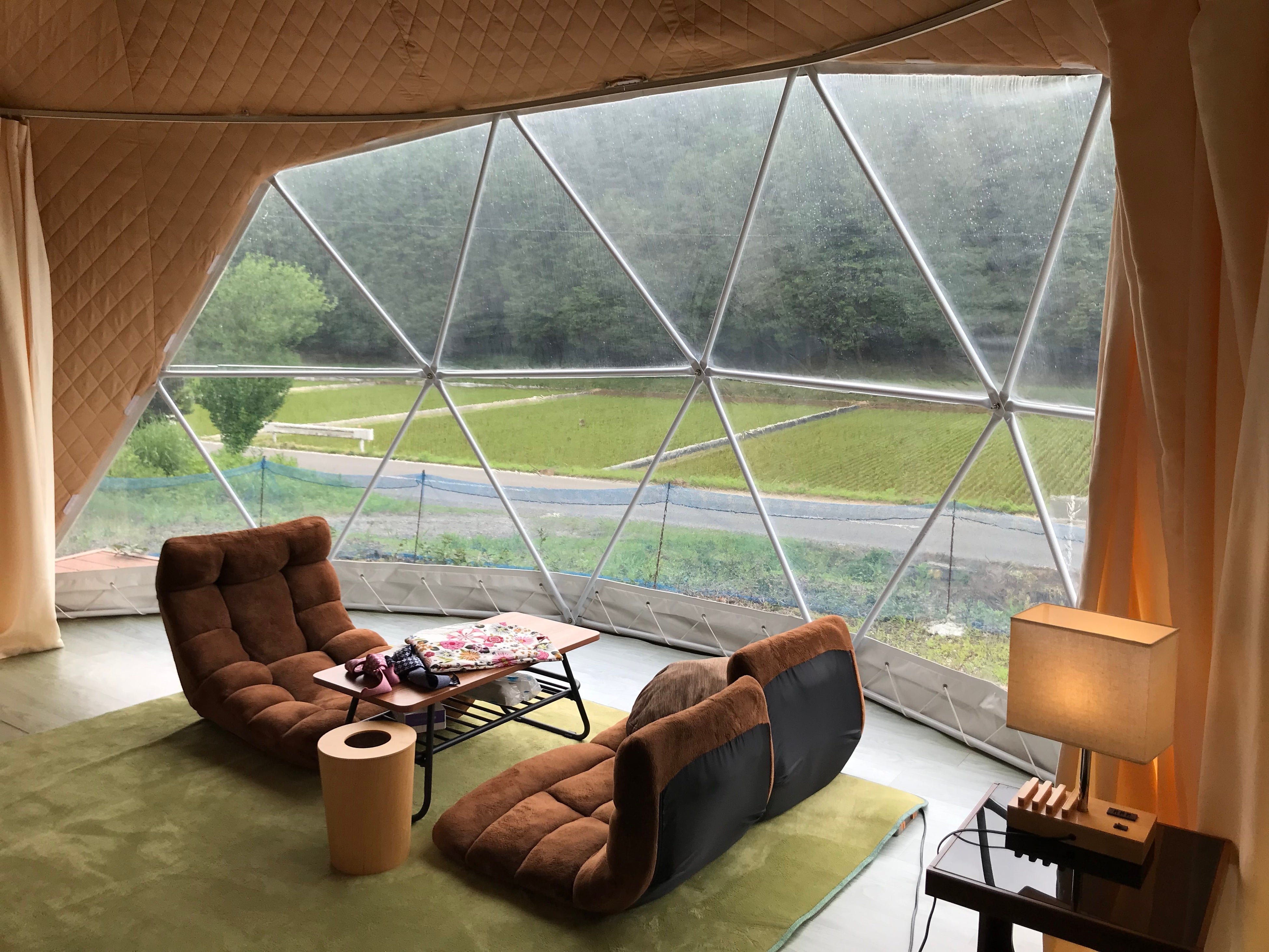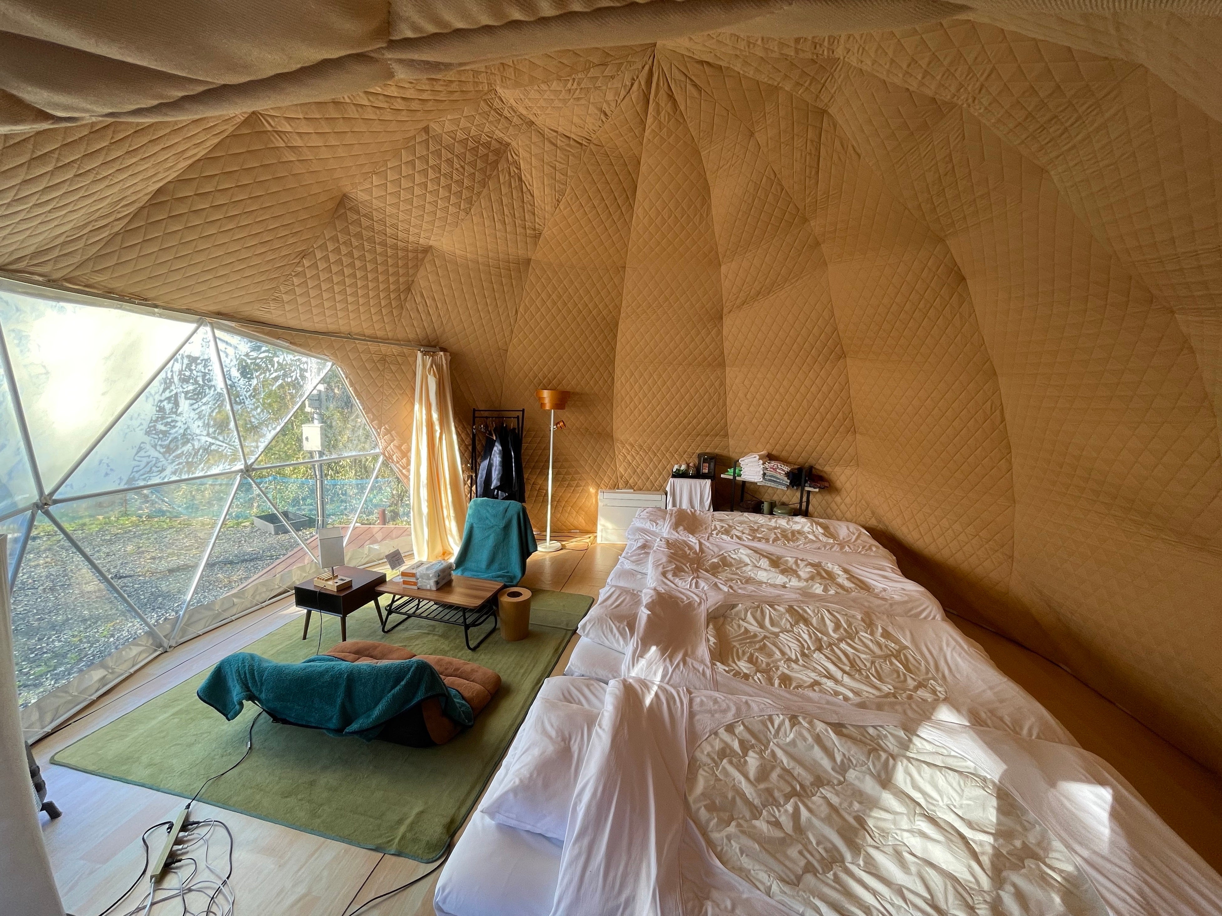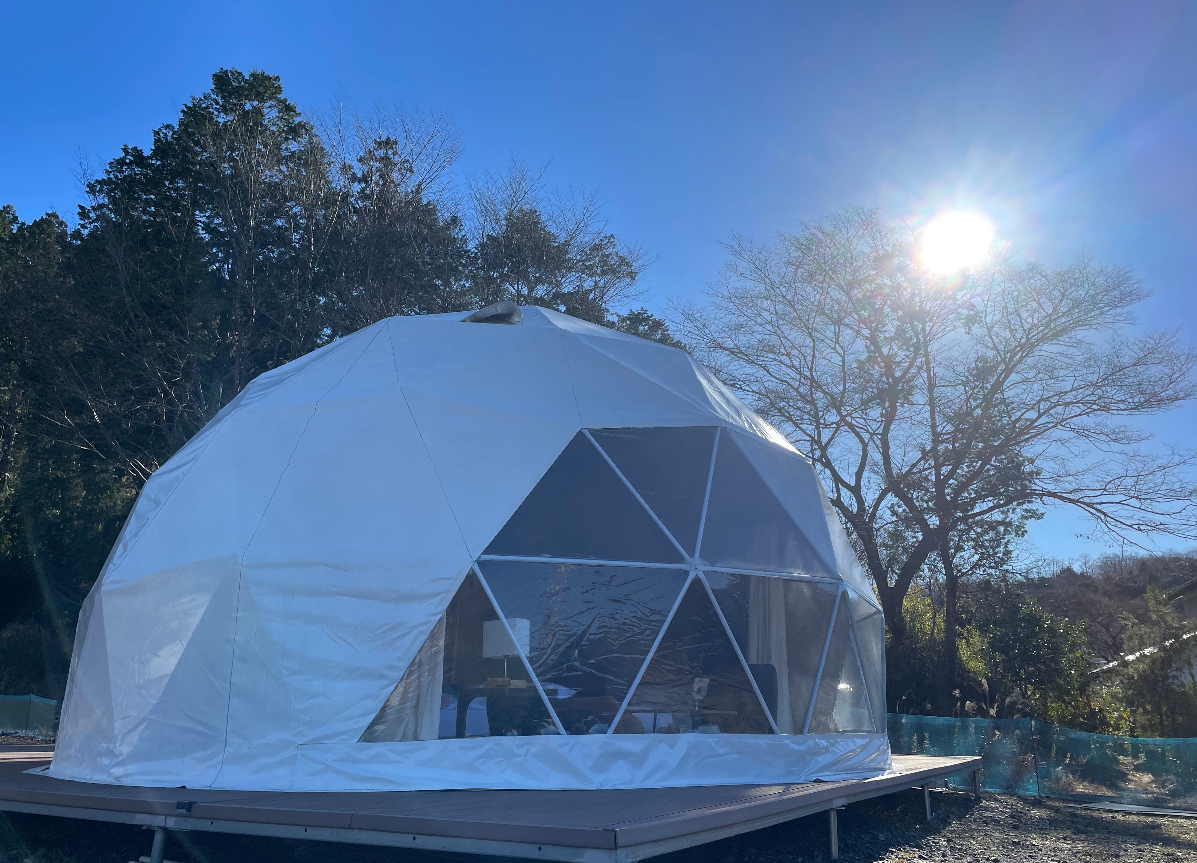 【glampark 益子舘の魅力③.冷暖房完備の広々としたドームで快適ステイ】