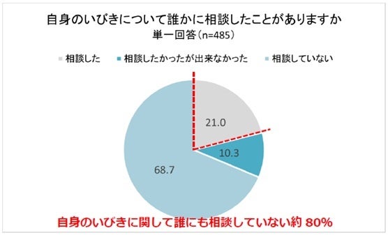 自身のいびきに悩んだ経験のある人のうち、68.7%は「誰にも相談していない」、10.3%は「相談したかったが出来なかった」と回答。