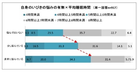 自身のいびきに悩む人ほど、平均睡眠時間が短い傾向にあることも明らかになりました。