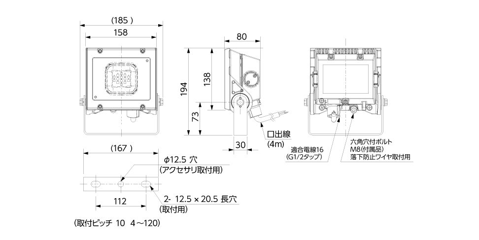 ケーブル保護のためプラントで多く採用されているフレキシブルチューブ取付ネジG1/2(適合電線管16)を直接取り付け可能です。