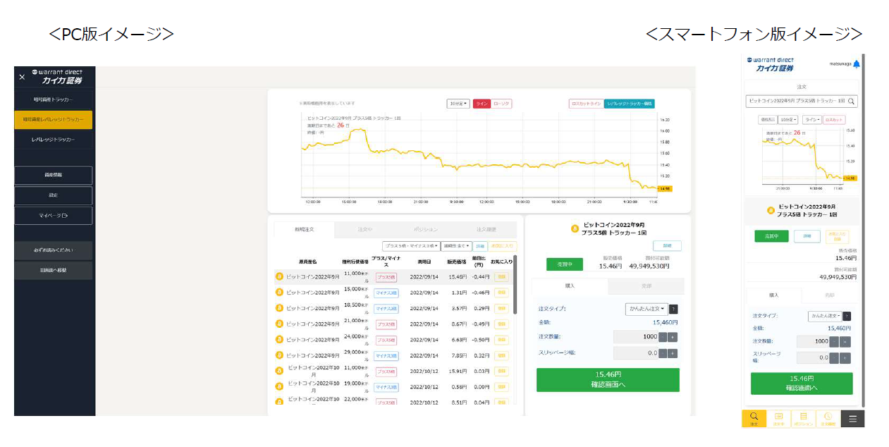 カイカ証券、「暗号資産レバレッジトラッカー」「レバレッジトラッカー」取引画面リニューアルのお知らせ