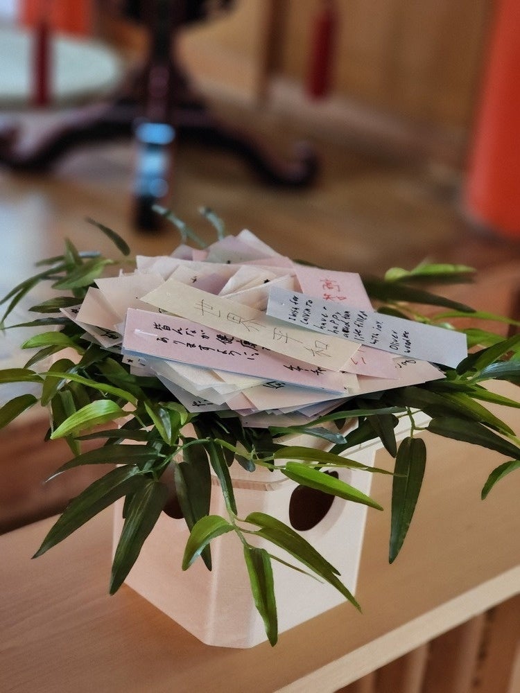 今年は東海3県の和紙(小原和紙、美濃和紙、伊勢和紙)を使用した短冊に願いを書いていただき、日本の伝統文化にふれていただくと共に、やわらかな色合いで風情ある七夕の空間を演出しました。