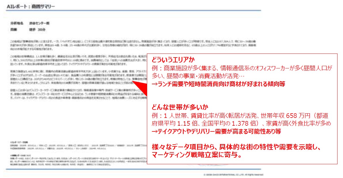 【生成AIにより、街の傾向や需要まで具体的に示唆】店舗マーケの戦略立案を支援する「商圏レポートAI」、提供開始