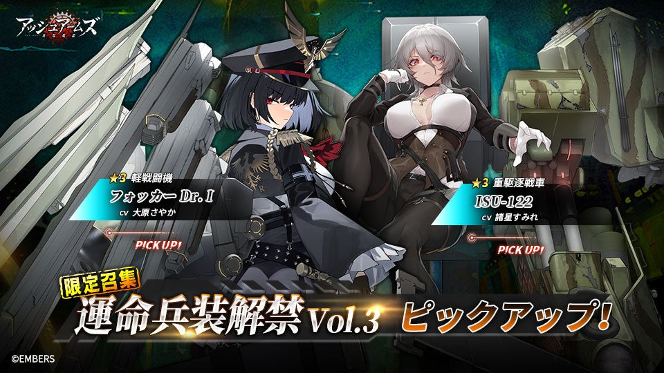 ※★3軽戦闘機「フォッカーDr.Ⅰ」と★3 重駆逐戦車「ISU‐122」は限定DOLLSのため、「栄誉の輝きを永遠に Vol.3」召集が終了後、しばらく入手できなくなります。