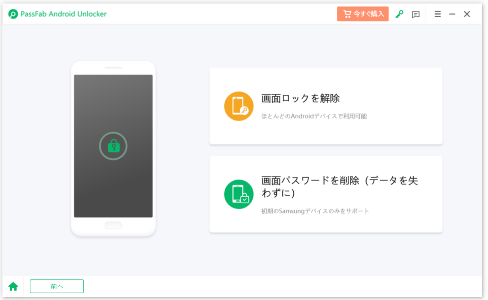 Step1:PassFab Android Unlockerを起動し、「画面ロックを解除」を選択します。
