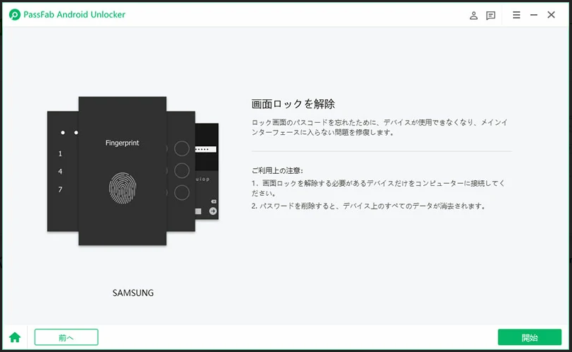 PassFab Android Unlockerは、PINコードも含め、指紋、パスワードによる画面ロックを解除することができるツールです。