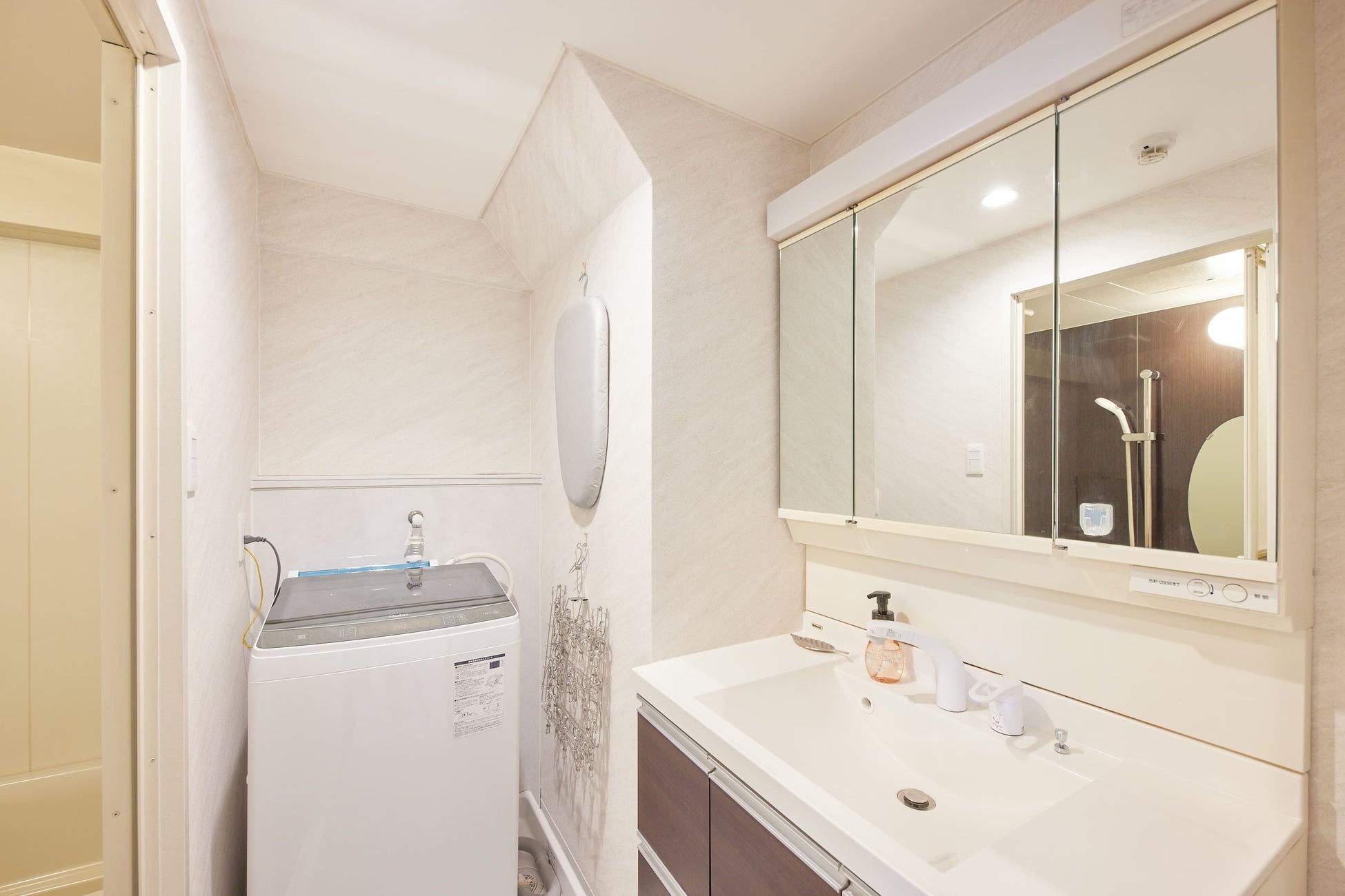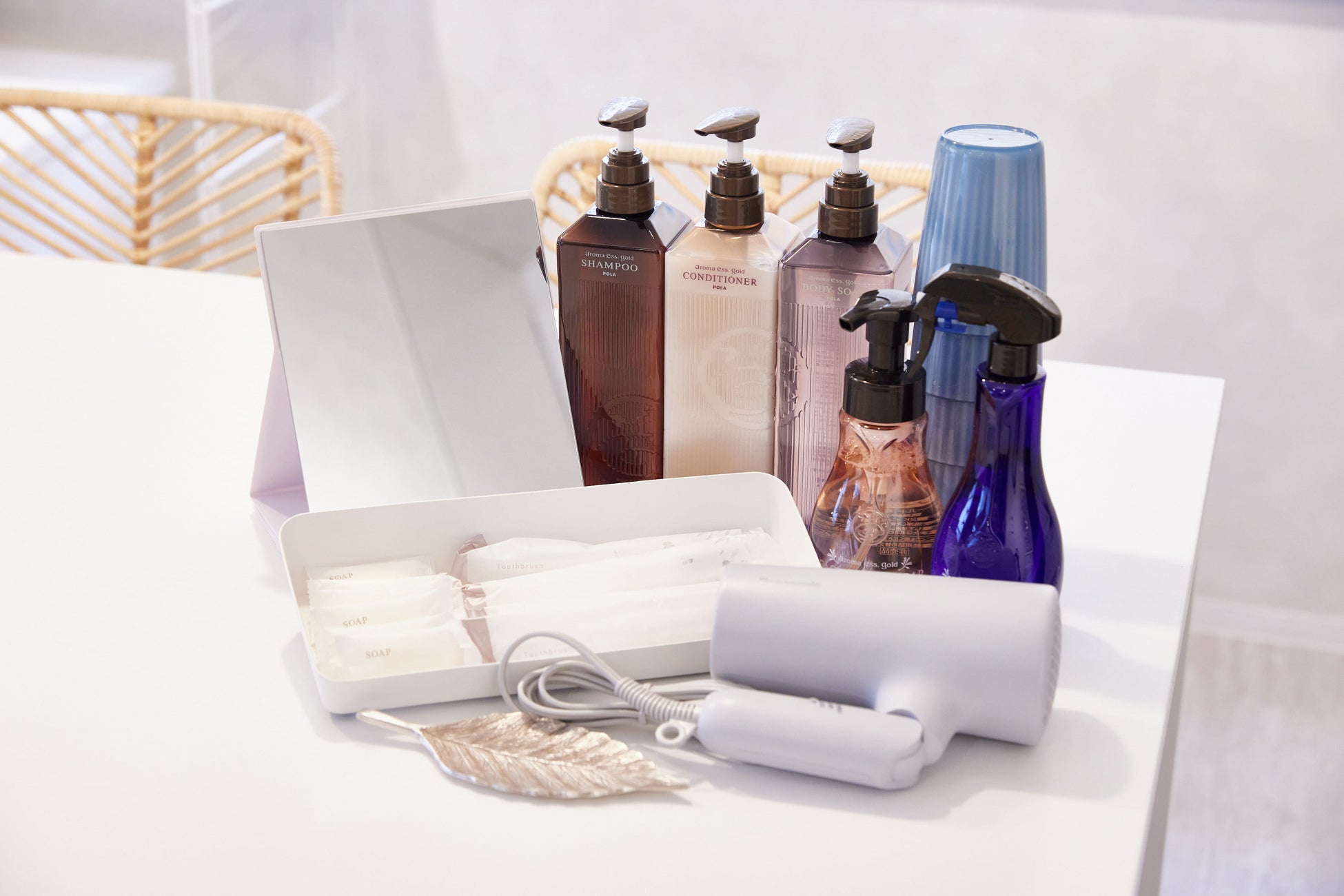 ドライヤーはパナソニックのイオニティを採用。そのほかシャンプーコンディショナーなどのアメニティもPOLAで統一しています。このアメニティへのこだわりと、大人数に対応したゆったりした水廻り設計は「eni.」の特徴ともいえます。