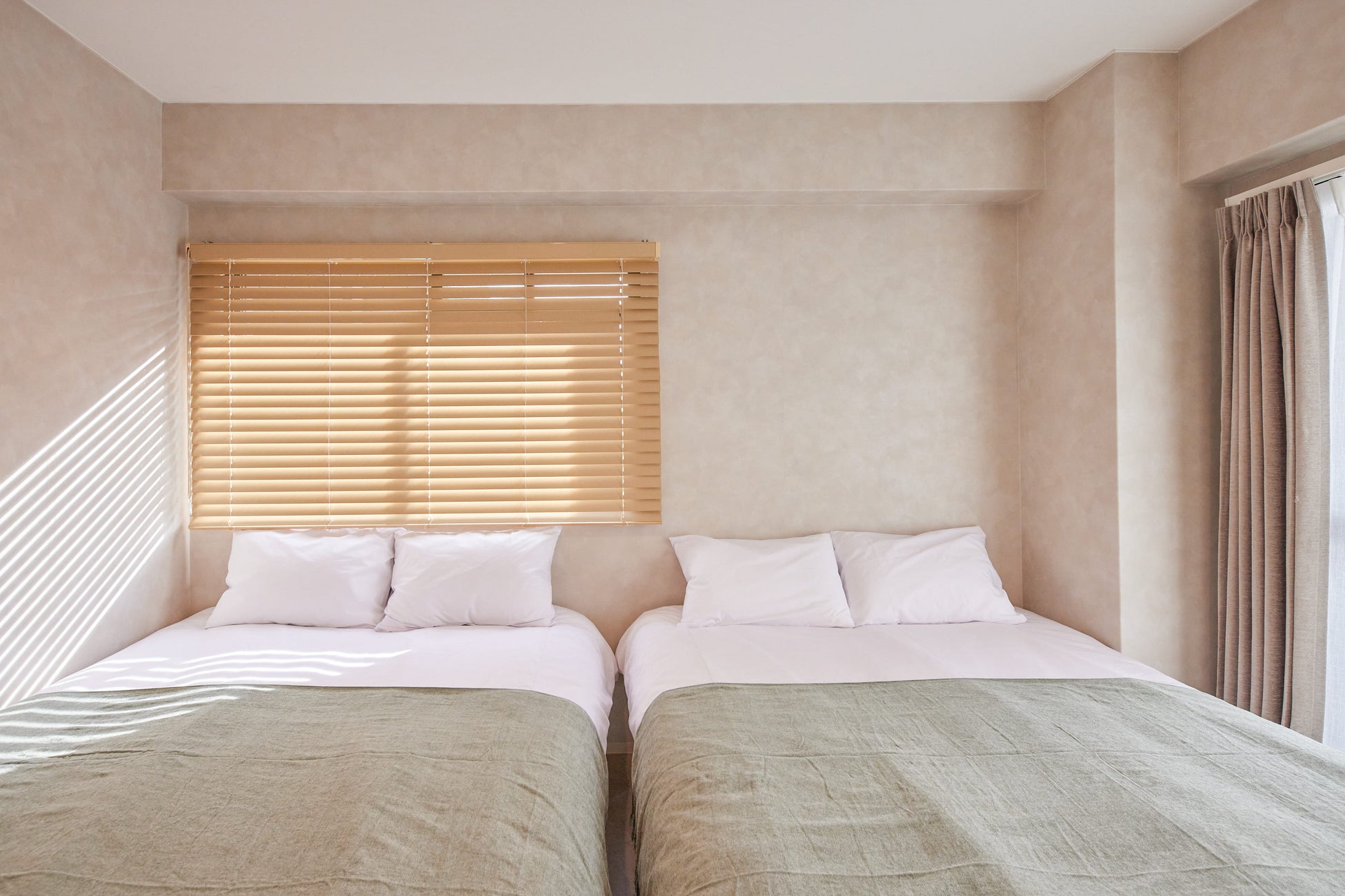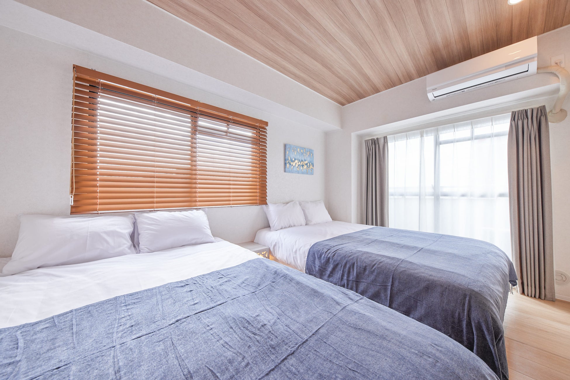 寝室は合計で4部屋あり、リビングのソファベッドも使用すれば最大14名までの宿泊が可能です。家族や友人など大人数でのグループ旅行でもプライバシーが保てるように個室を多めに用意しました。ゆったりした広さのお部屋が多く、LDKだけでなく個室でもゆっくりお過ごしいただけます。