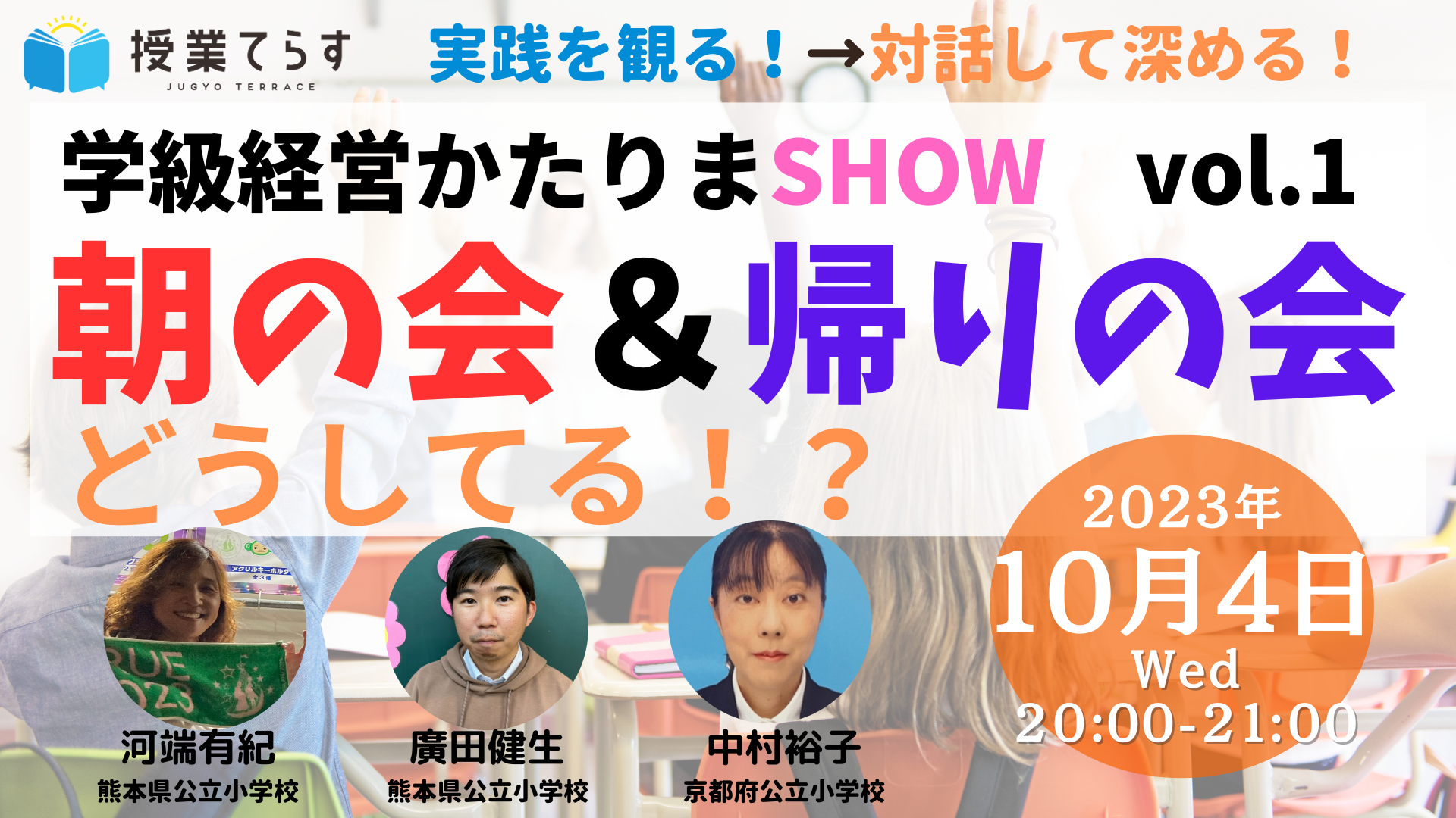 【10/4(水)20:00~21:00】小学校教員向け「学級経営かたりまSHOW!~朝の会&帰りの会どうしてる!?」オンライン開催