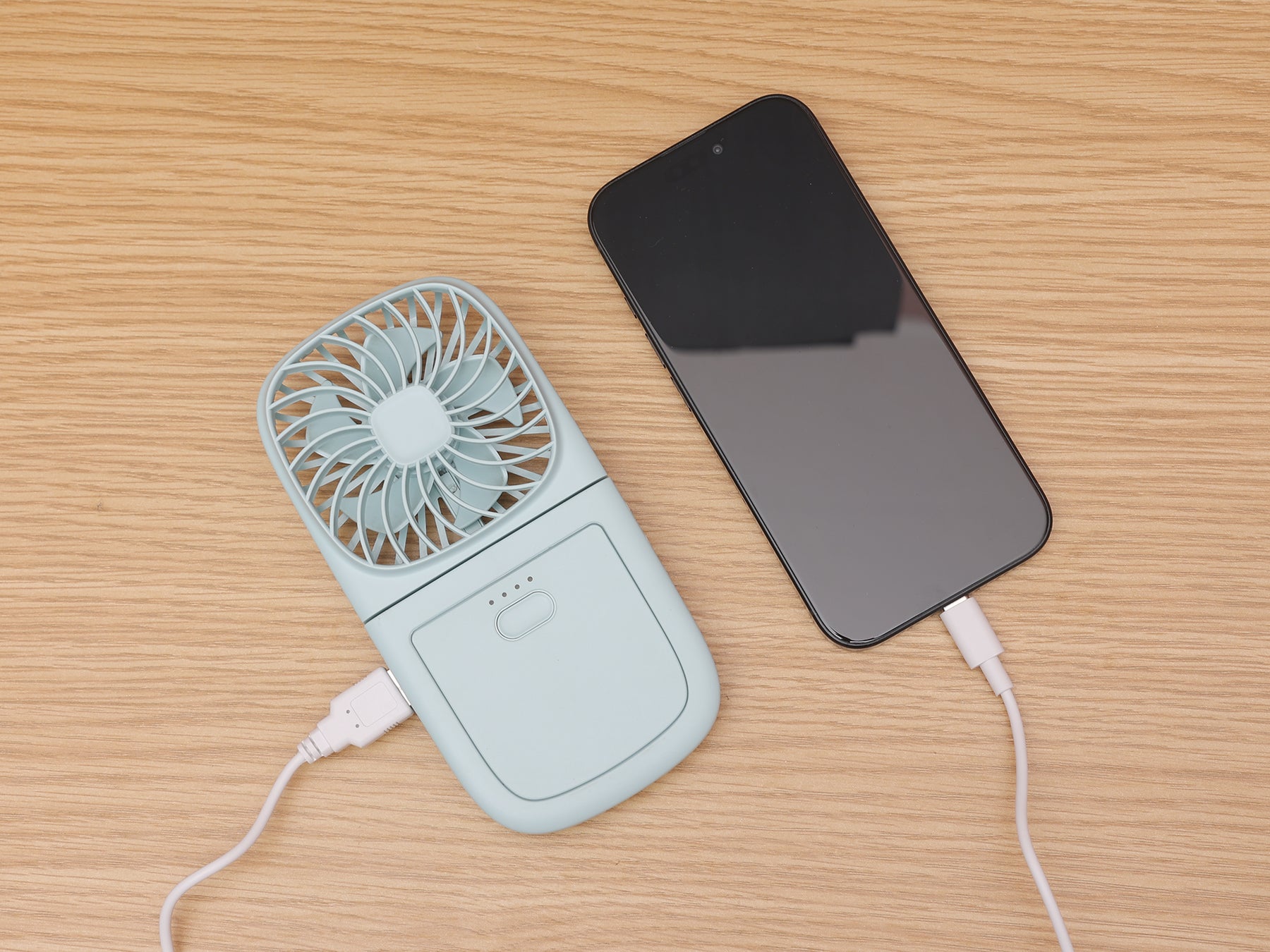 本製品は、ハンディファンとしての使用はもちろん、デスクファン・首掛けファン・モバイルバッテリー・スマホスタンドとしても活躍する1台5役のスマートファン。