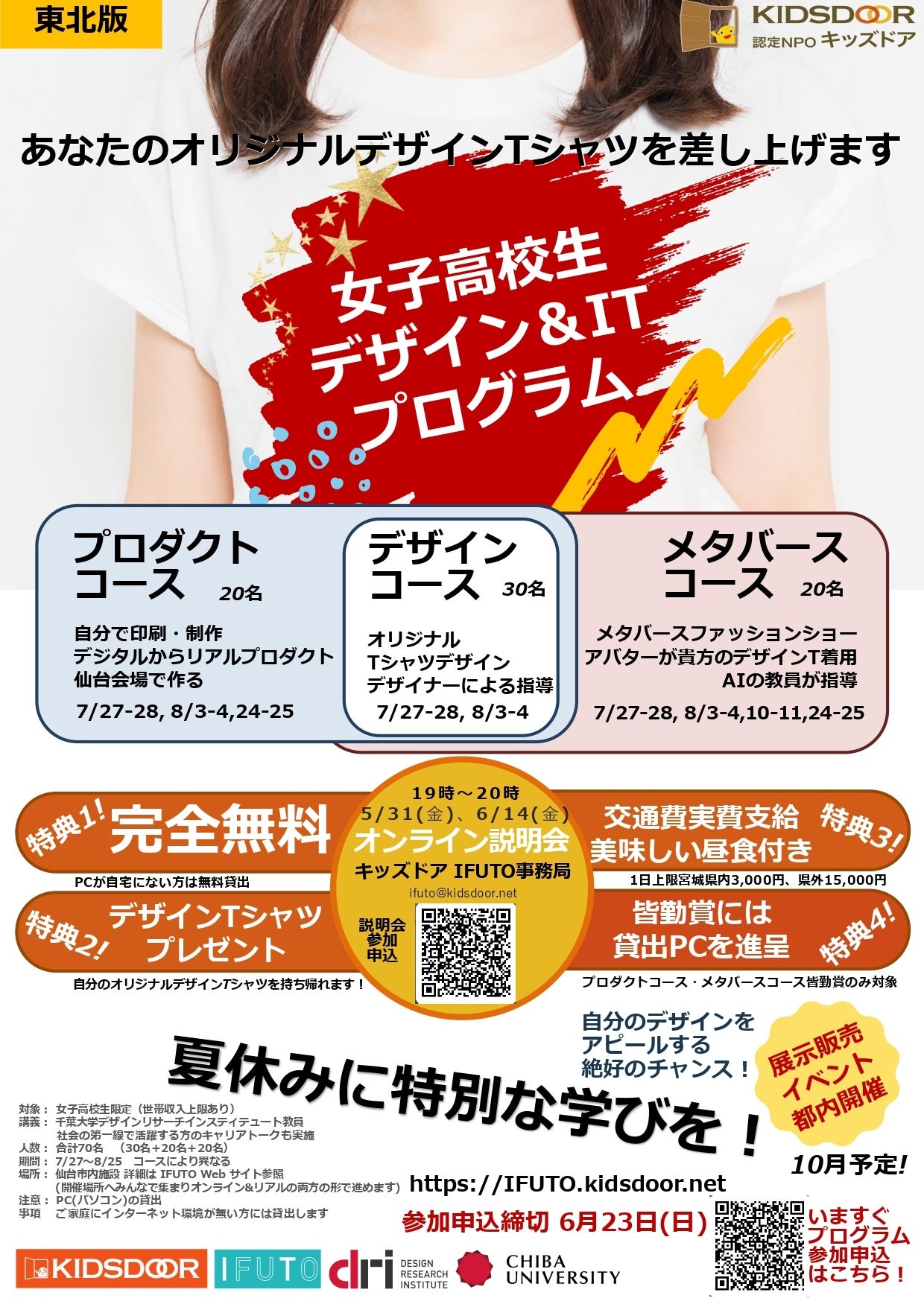 認定NPO法人キッズドア 「女子高校生対象!大学で学ぶIT&デザインプログラムIFUTO」を仙台会場でも実施・生徒を募集