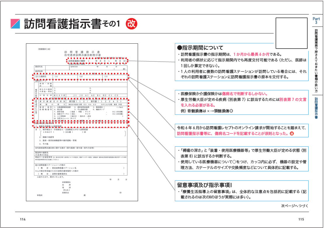 訪問看護で必要となる各種書類について、とくに「押さえておきたい」ものを取り上げ、記載例や記載時のポイントなどを解説しています。各書類はQRコードからダウンロードできます。