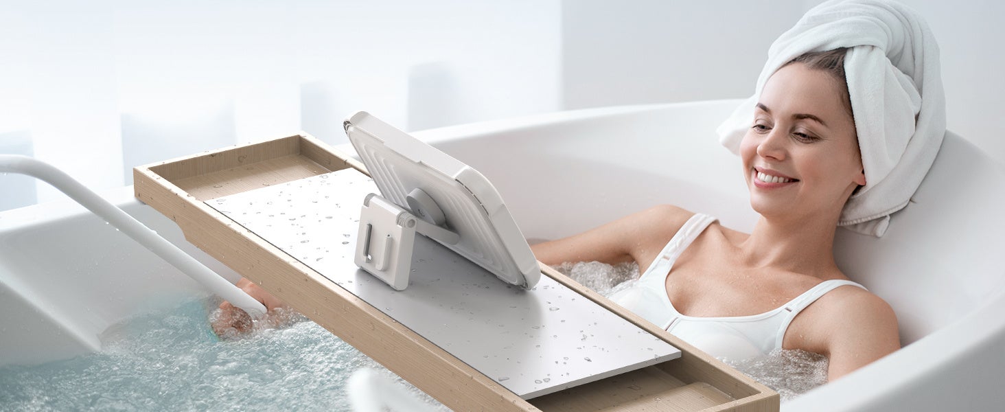 ボールジョイントは360°回転でき、お好きな角度にカスタマイズできます。また、最長6cmに伸縮するアームも120°角度を変更可能です。角度だけでなく伸縮も調整できますので、浴室でのスマホの使用をさらに快適にできます。