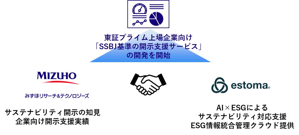 株式会社estoma(本社:東京都千代田区、代表取締役:伊藤総一郎、以下「estoma」)とみずほリサーチ&テクノロジーズ株式会社(本社:東京都千代田区、代表取締役社長:吉原 昌利、以下「みずほリサーチ&テクノロジーズ」)は、このたび生成AIを活用したSSBJ基準に基づくサステナビリティ開示案作成サービスの開発に関する業務提携(以下「本業務提携」)を開始いたします。