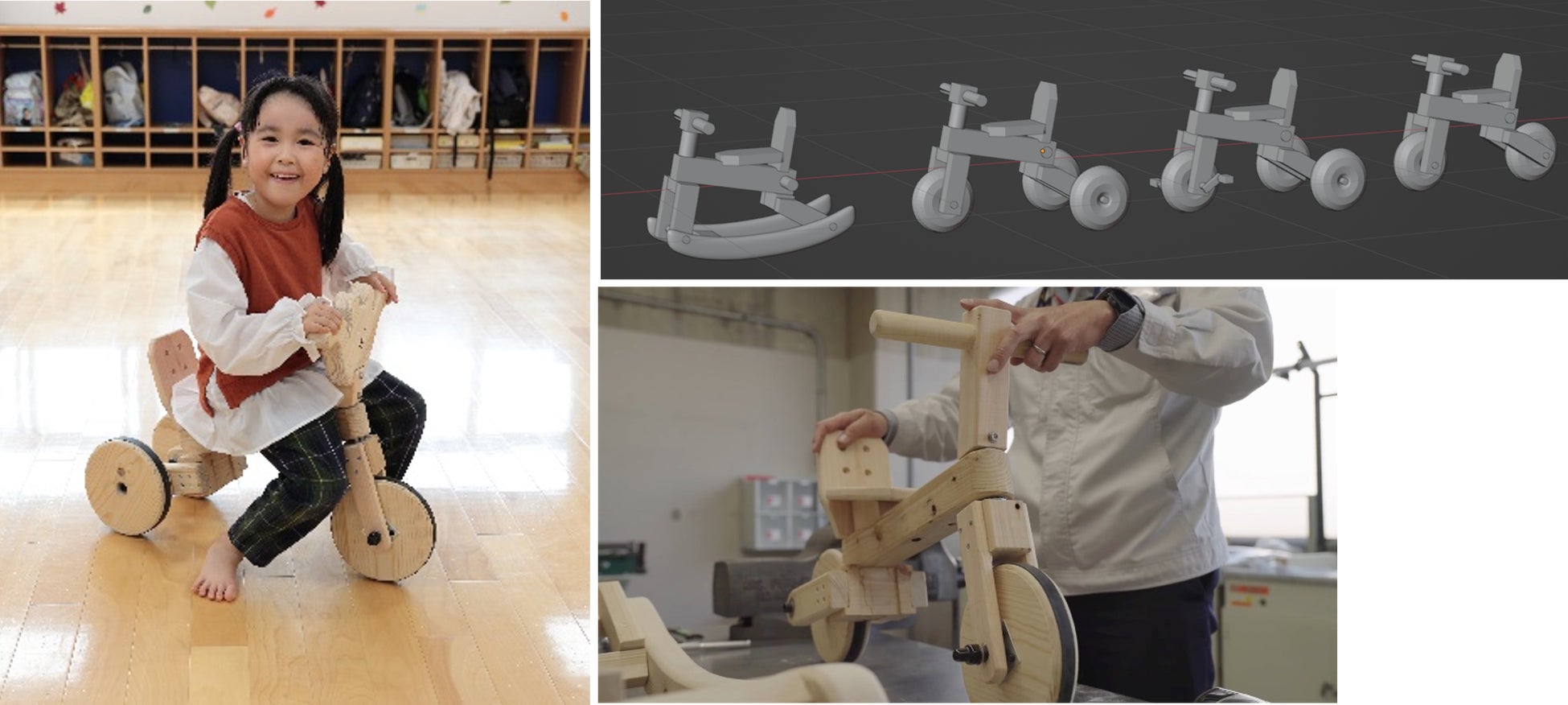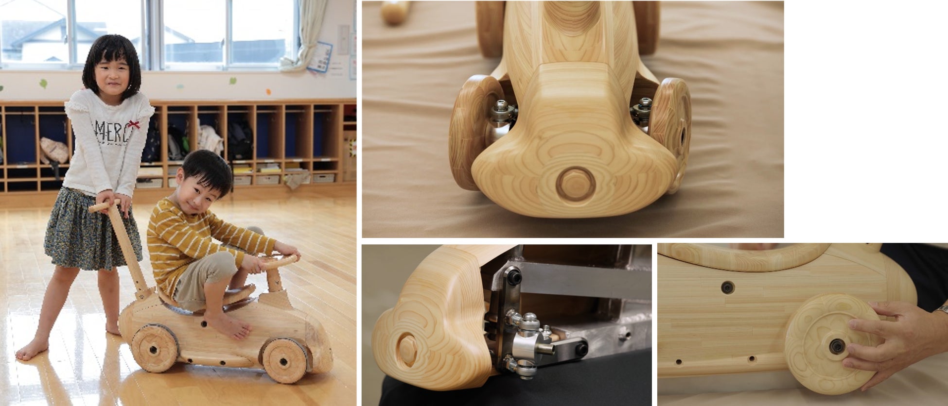 また、間伐材が使われないことで山の手入れが進まない課題に対して、木を使ったモビリティから、環境問題への貢献を目指します。さらに、木材を通して子どもを育む「木育」という教育目線の監修として木製玩具デザインを専門とする桜美林大学 林秀紀准教授に、調査結果を受けてのコメントや「木製玩具」におけるデザインの重要性などを語っていただきました。