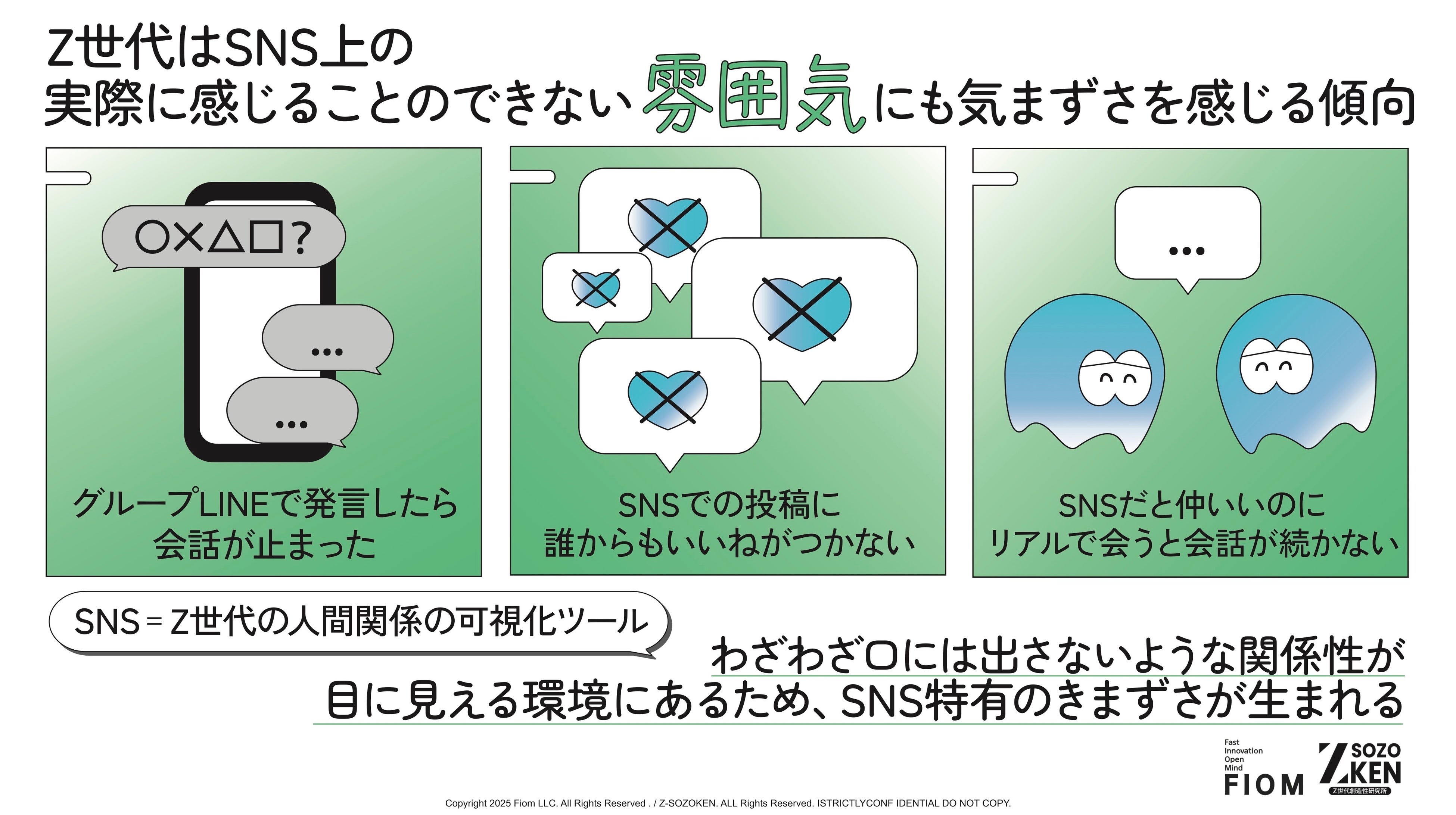 SNSは逃げ場ではない。Z世代の約8割がリアルと同等に感じるデジタルの気まずさと、いいね数で可視化される「無言の圧力」の実態をZ-SOZOKEN(Z世代創造性研究所)(運営:Fiom)が分析。