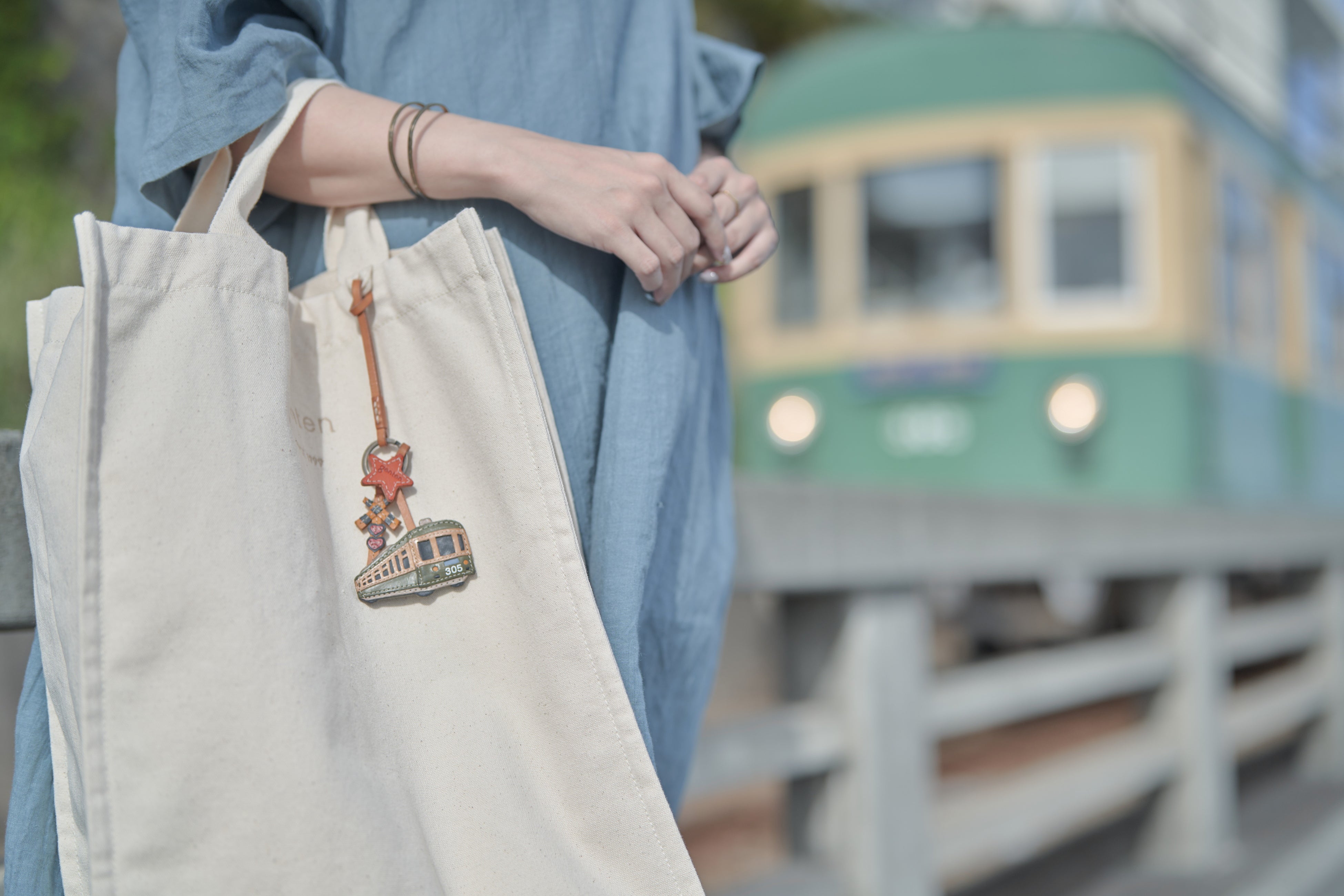 旅するバッグの傍らで揺れる愛らしい姿。まるで夏の思い出をかたちにしたような。なつかしさを感じられる鉄道をモチーフにした限定色で人気のシリーズ「ワクワクチャームができ上がりました。