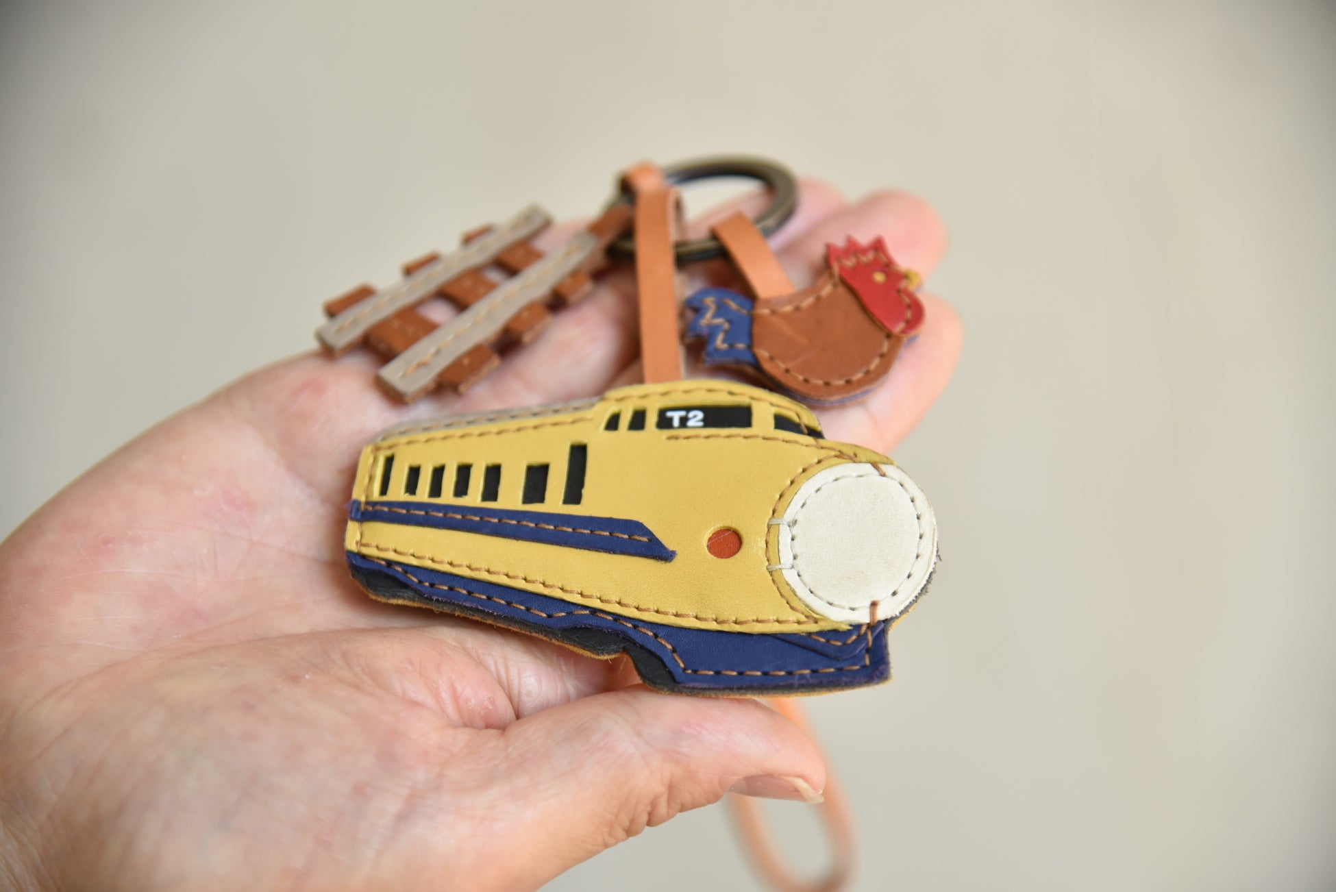 ワクワクチャームは、サブアイテムが2つ付いているのが定番ですが、ドクターイエローは設備の計測を担う車両ということで、サブアイテムの一つは線路。そして、東海道新幹線の拠点である名古屋の名物を……と発想して、ブランド地鶏の名古屋コーチンをおともにしています。