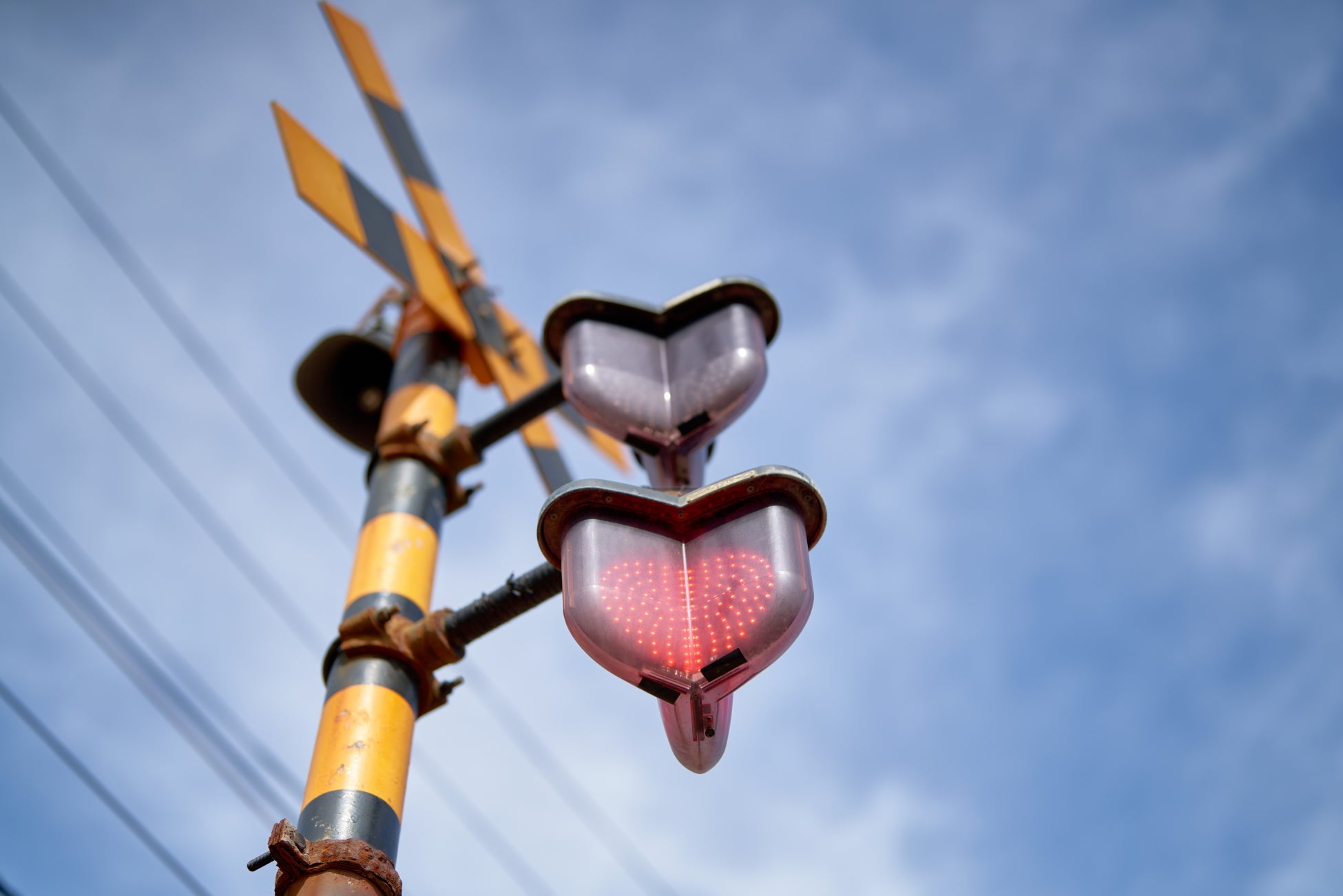 美しい海岸に面した江ノ島電鉄の踏切は、下から仰ぎ見たときに赤いランプがハート型に見えるのが特徴で、チャームのサブアイテムの一つはこの踏切をモチーフにしました