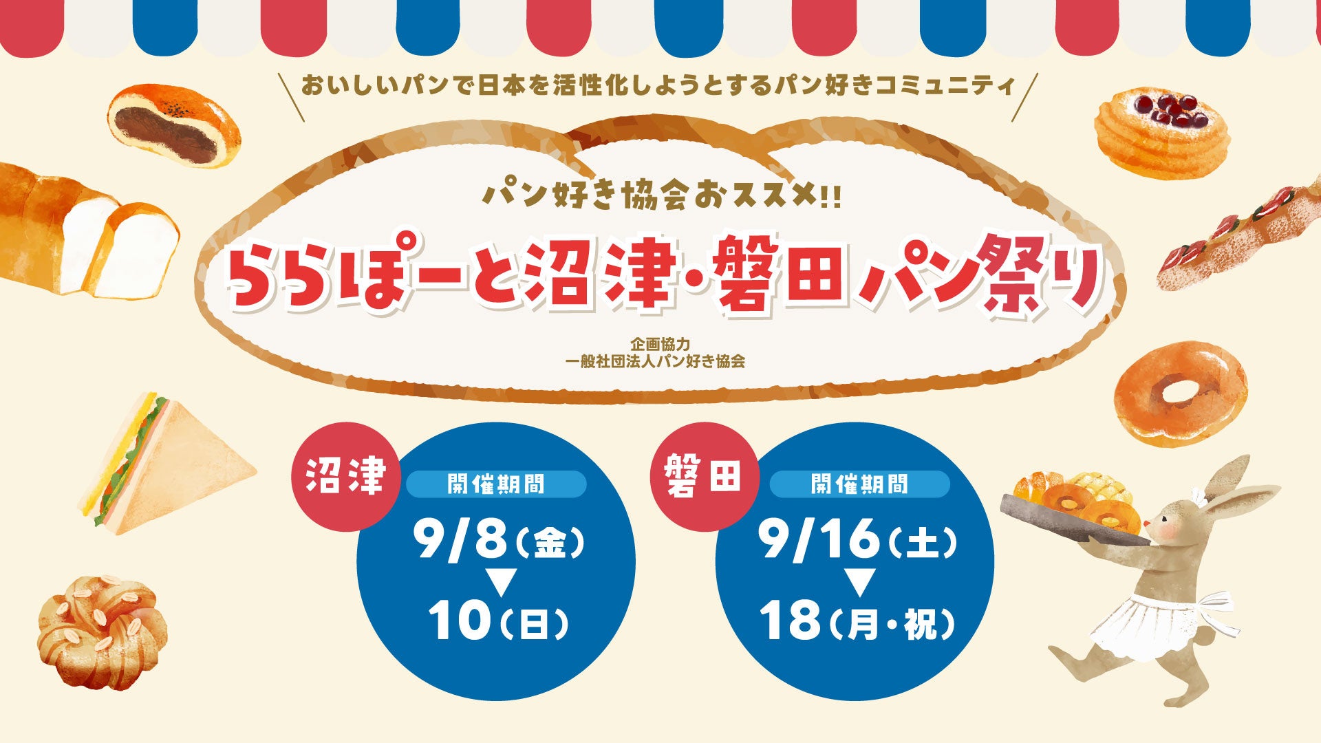是非、期間中にららぽーと沼津・ららぽーと磐田に足を運んでいただき、お気に入りのパンを見つけてください。