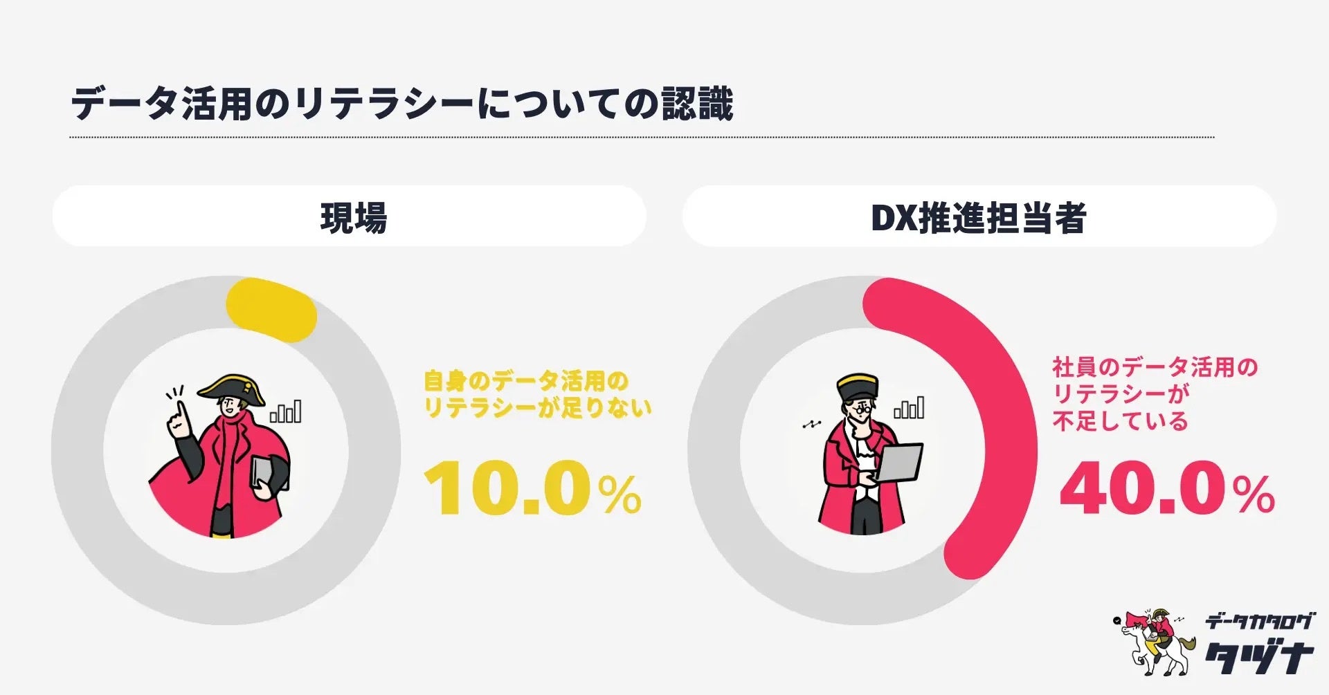 【浮き彫りになる"データリテラシー"の認識ギャップ】現場担当の10%がリテラシー不足を実感も、DX推進者の40%が現場社員のリテラシー不足を実感