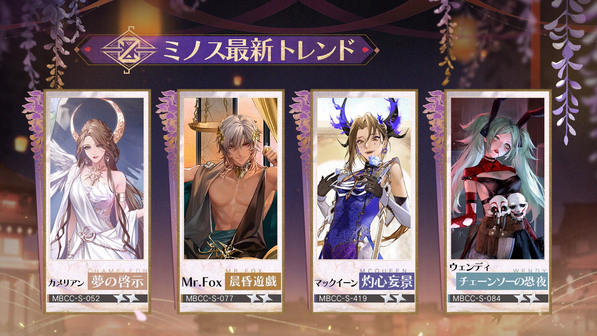 ■ 販売詳細:期間中、局長衣装「日輪に問ふ」、星3衣装「デイリン・世界の焦点」「曜・燃える神舞」「ハーメル・オディール」、星2衣装「カメリアン・夢の啓示」「Mr.Fox・晨昏遊戯」「マックイーン・灼心妄景」「ウェンディ・チェーンソーの恐夜」が期間限定で復刻販売されます。