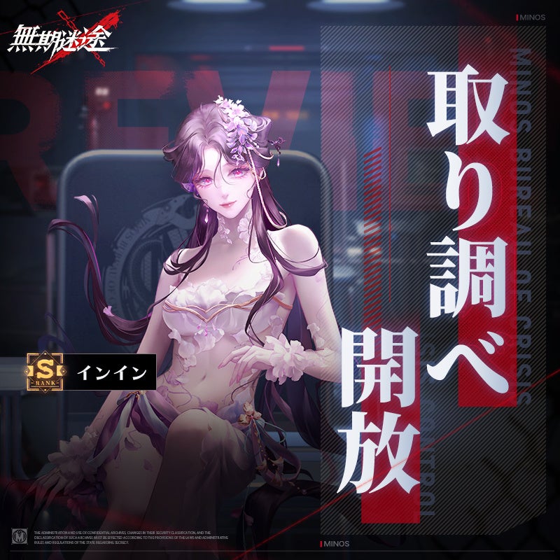 ■ 更新内容:4月15日(火)メンテナンス後、取り調べの対象に「インイン」「玉骨」「無患子」が追加されます。対象のコンビクトを獲得後、取り調べ証拠品・段階1を集めると、指定時間以降、【管理局】-【取り調べ】の順にタップして、取り調べを行うことができます。