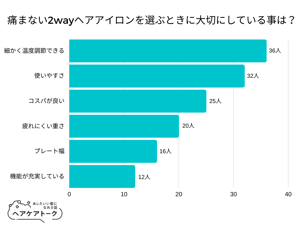 株式会社AWA(https://a-w-a.co.jp/)が運営するヘアケア情報メディア「ヘアケアトーク」(https://haircare-talk.com/ )は、日本全国の10代以上の方を対象に「痛まない2wayヘアアイロンを選ぶときに大切にしている事は?」についてのアンケート調査を実施しました。