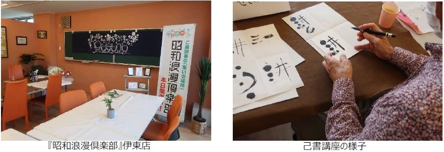 『昭和浪漫俱楽部』は、地域の高齢者が気軽に立ち寄れて、楽しく過ごせるような場所を提供したいとの想いで発足した当社の事業です。『昭和浪漫俱楽部』伊東店は、当社の趣旨に賛同した『宅配クック ワン・ツゥ・スリー』伊東店の武井オーナーにより、伊東市の一般介護予防事業のひとつである「居場所」※1の委託事業として、5月10日(水)に開業されました。オープン当日は内覧会や己書講座、キッチンカーの販売、野菜の即売会が行われたほか、『宅配クック ワン・ツゥ・スリー』のお弁当も振る舞われ、食事や講座の受講を楽しむ高齢者の姿が見られました。今後は、毎月第2・第4月曜日の月2回、己書講座に加えて、健康のために必要な栄養素を分かりやすく解説する栄養講話や、惣菜店を併設してお惣菜の販売も順次行っていく予定です。