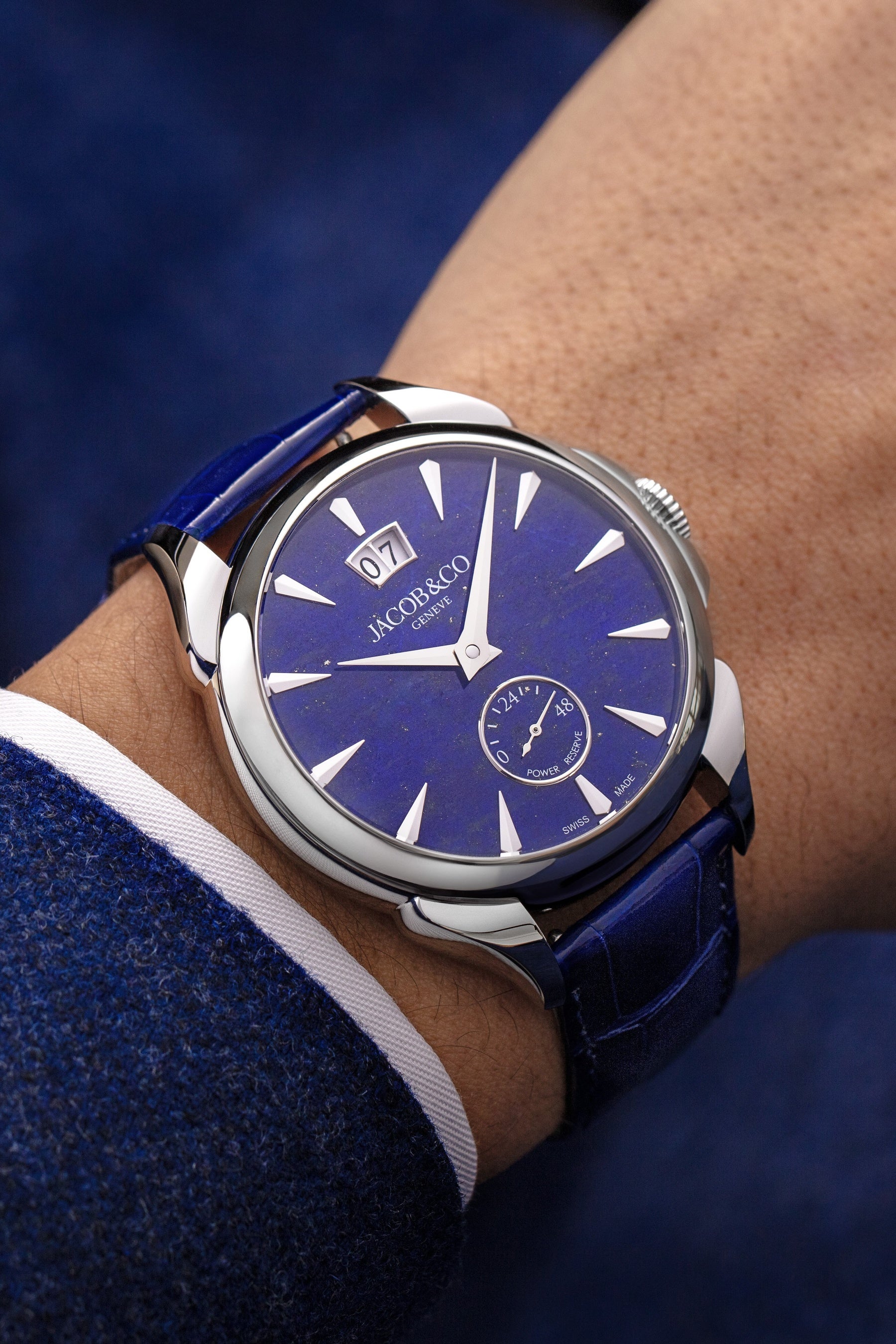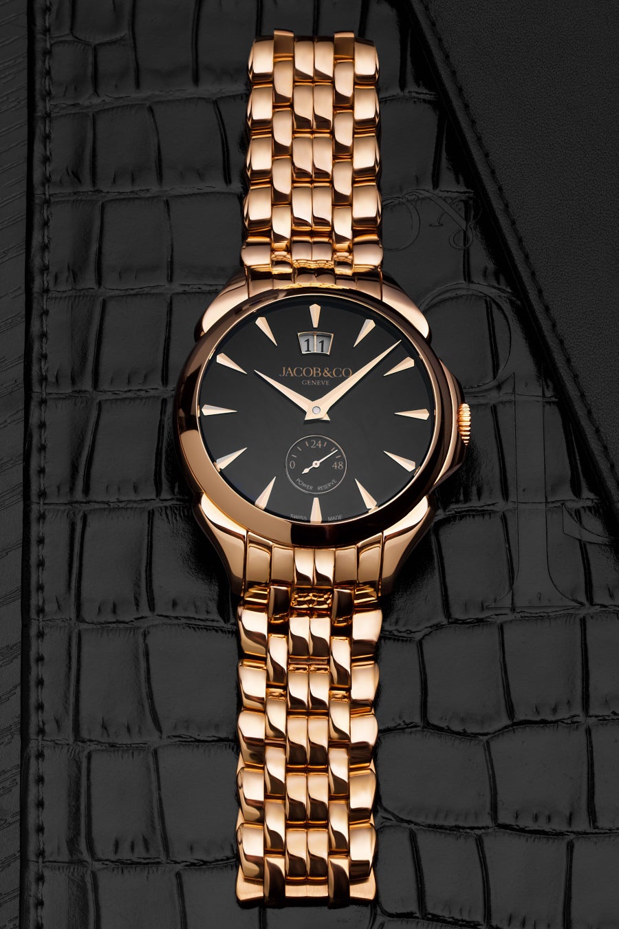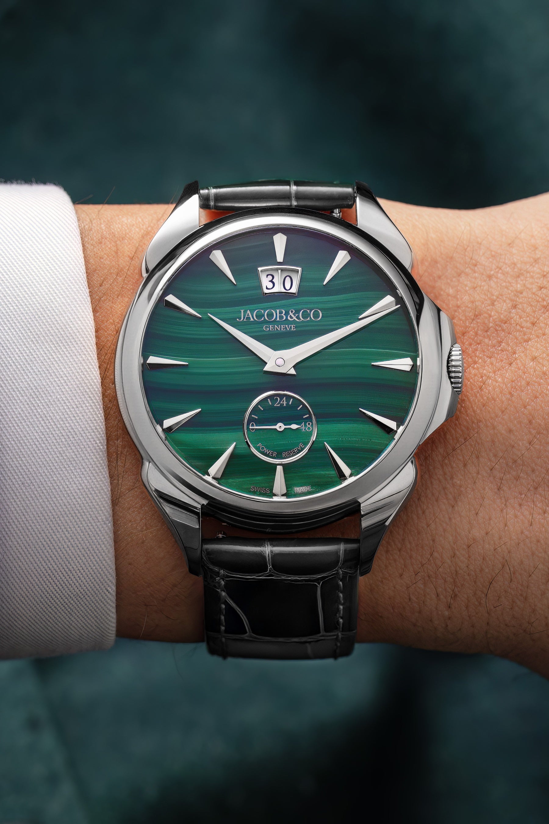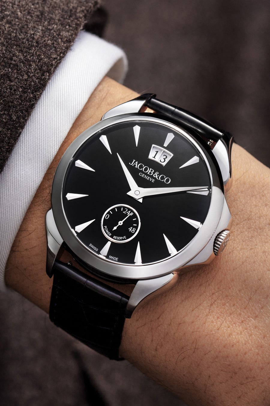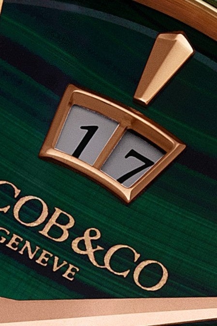 クラシックな見た目の奥に潜むこだわりは、実際に手にした瞬間に顕わになります。視認性と存在感を両立したビッグデイトは、余計な装飾を排しながらも力強いアクセントとして機能。「クラシックウォッチにデイト表示を組み込む」という一見すれば単純な答えにさえ、妥協を許さないジェイコブ&コーの信念を物語っています。