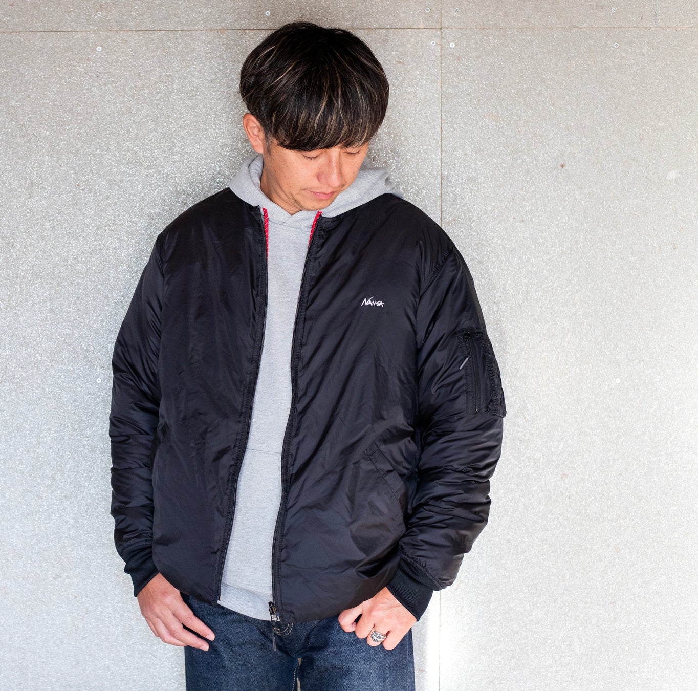ミリタリーライクなMA-1デザインと、横軸キルトのベーシックなダウンスタイルを気分やシーンに合わせた着こなしを楽しめます。