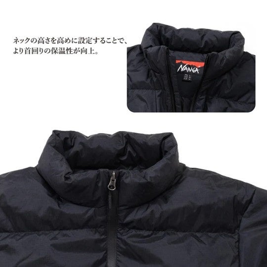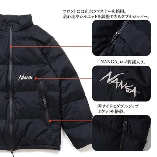シンプルなデザインでコーディネートを選ばない、街でもキャンプでも“ちょうどいい”ナンガのダウンジャケットです。