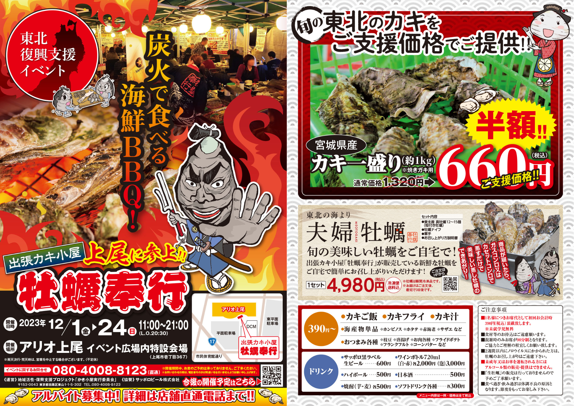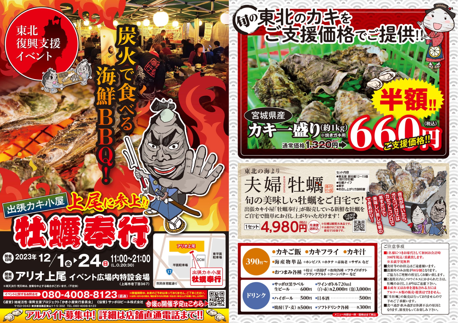 出張カキ小屋 【牡蠣奉行】が『アリオ上尾』に期間限定オープン!