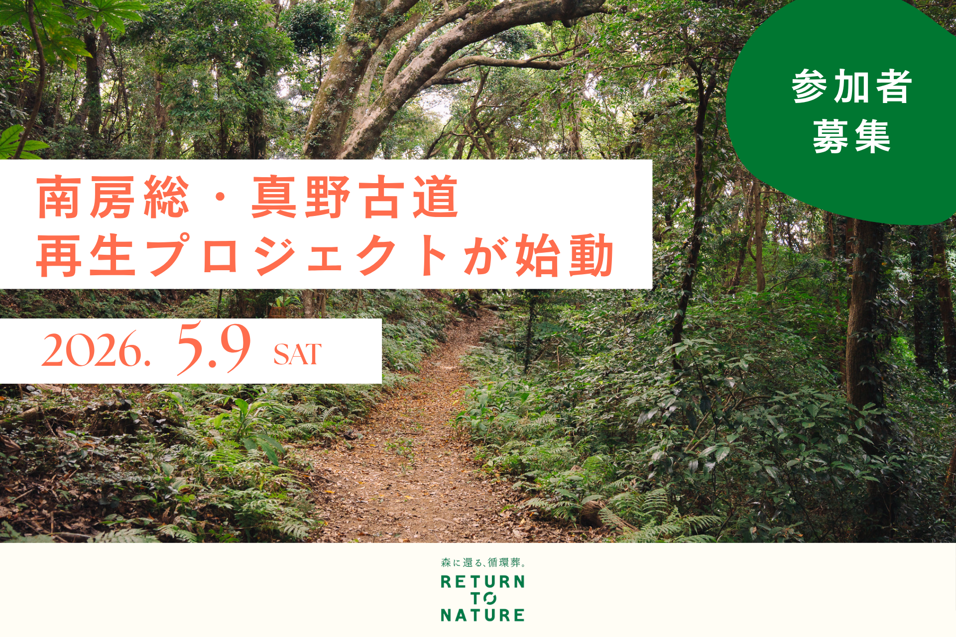 at FOREST株式会社(本社:兵庫県神戸市、代表取締役CEO:小池友紀、以下:at FOREST)が運営する循環葬®︎RETURN TO NATURE at 真野寺(南房総市)にて、人々の記憶から忘れ去られていた「真野古道」を再生するプロジェクトを始動します。