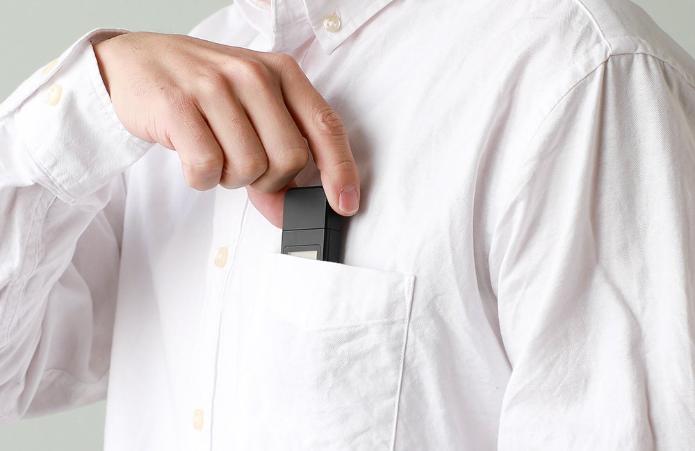 手のひらサイズ(重量30g※乾電池除く)なので携帯にも便利です。