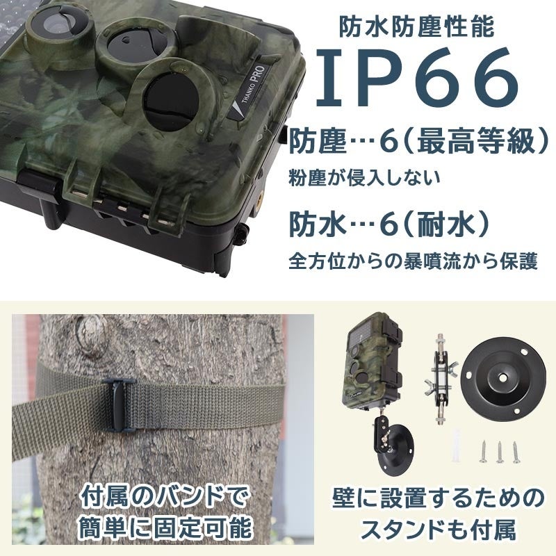 ・レンズ/F=4.3; F/NO=2.0; FOV=80°自動IRフィルター ・トリガー時間/約0.4秒 プレブート0.2秒 ・有効範囲/昼間:1m~ 夜間:3m~15m