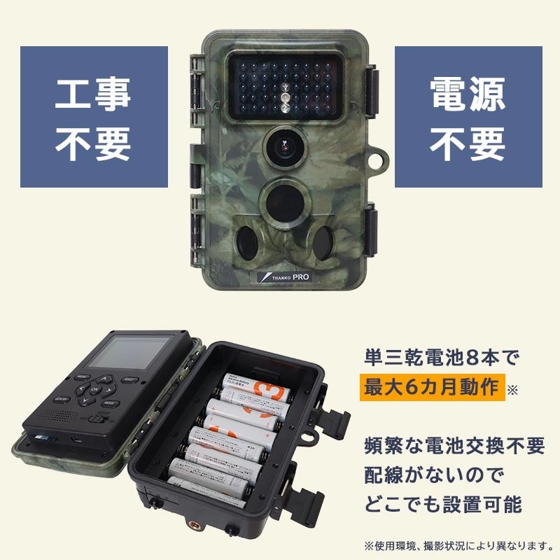 本製品は単三電池で最大6カ月※録画可能な防犯カメラです。