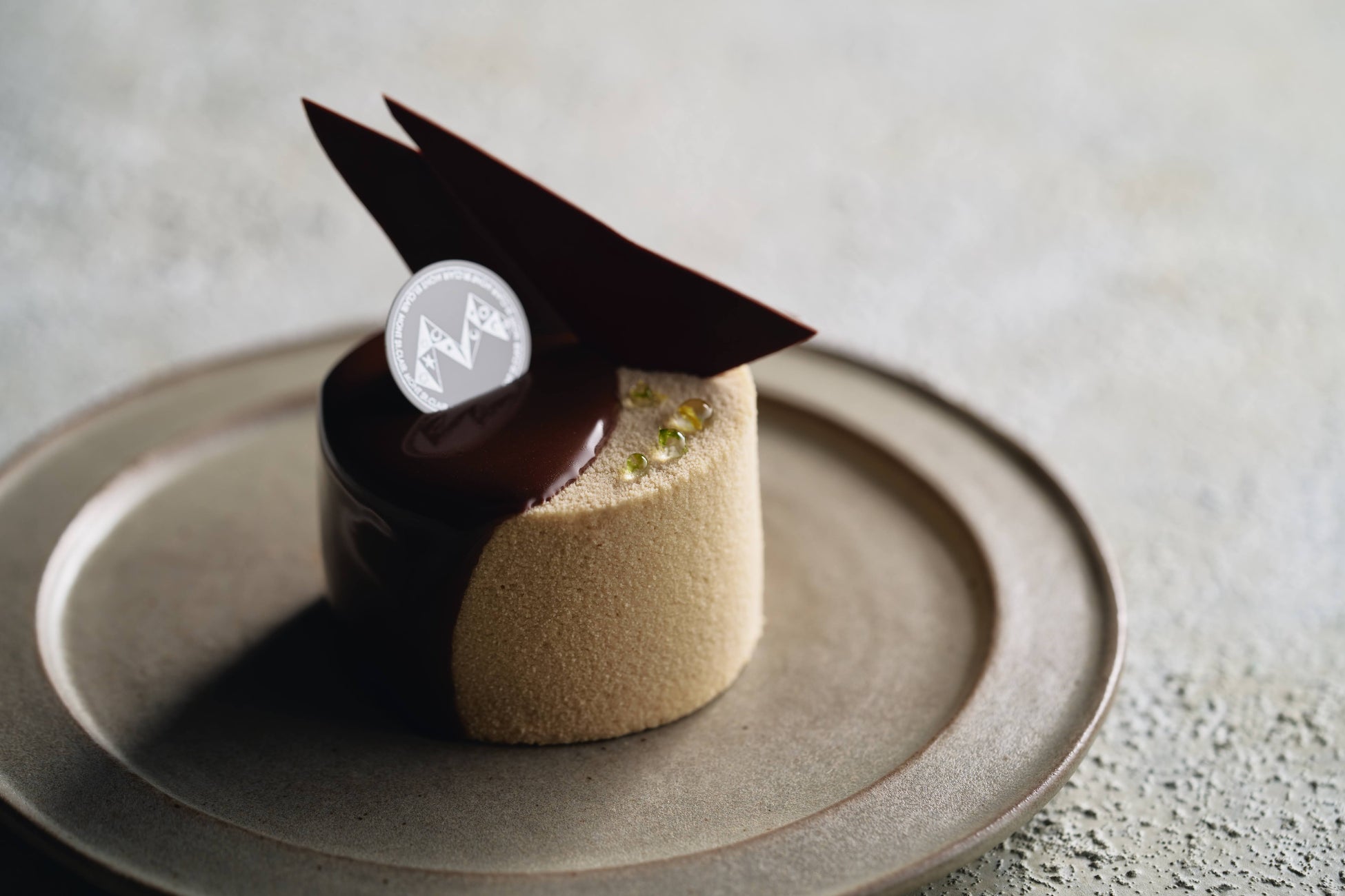 キャラメルのような味わいのブロンドショコラのムースの中に、ライム、レモン、ベルガモットのジュレとビターなショコラムースを忍ばせて。