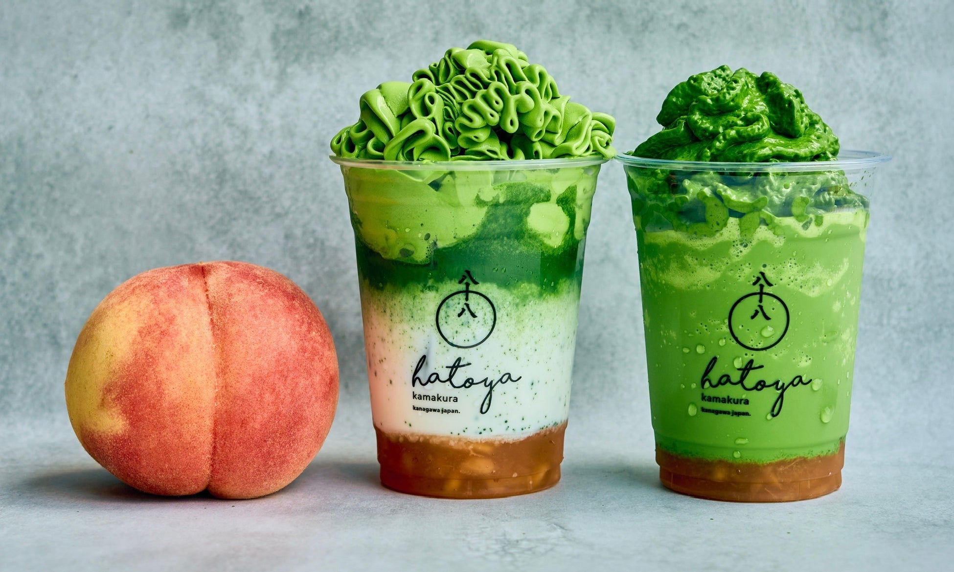 「白桃八十八ソフトラテ」「白桃泡抹茶八十八シェイク」