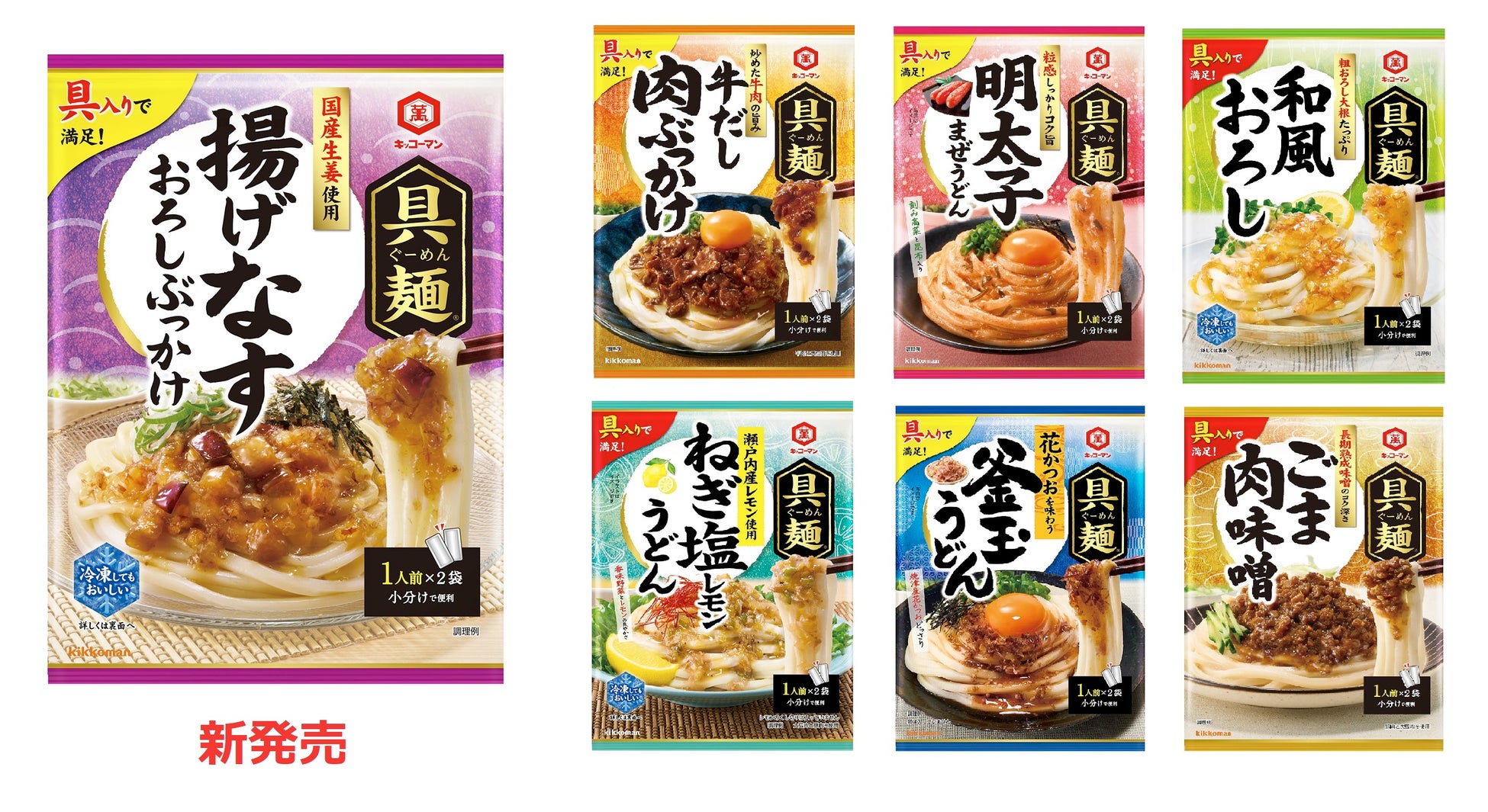 「具麺」シリーズは、このたび新発売する「揚げなすおろしぶっかけ」を含め、合計7 アイテムとなります。キッコーマンはこれからもお客様のニーズに合わせ、毎日の食事づくりを応援してまいります。