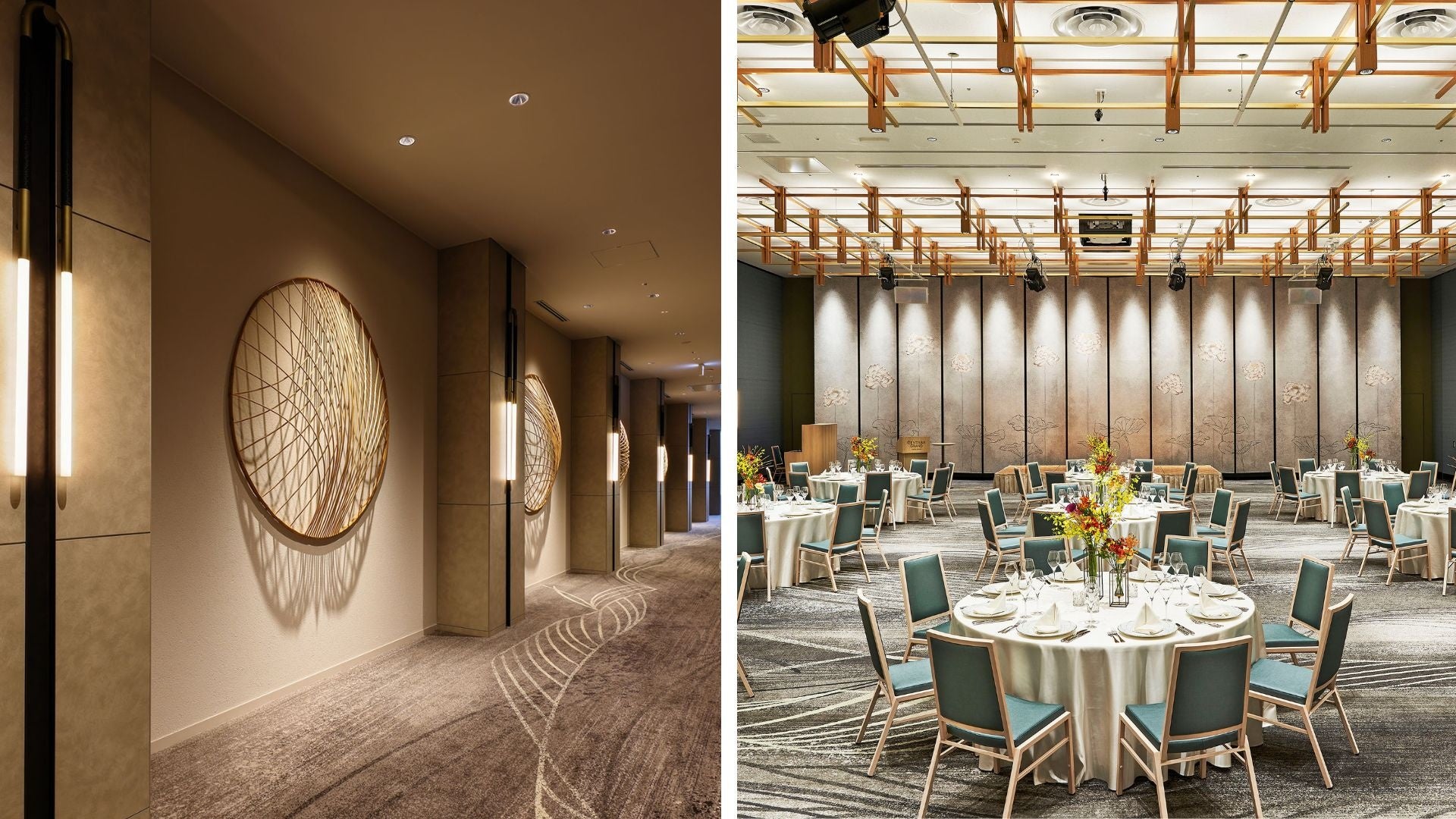ホテル3階にある宴会場のデザインには、日本とタイの共通伝統である竹細工を取り入れたアートワークや家具、カーペットを使用しています。また、壁面には自然素材を取り入れ、タイの植物からインスピレーションを得た特注のアートワークをあしらうことで、空間に彩りと生命力を添えています。