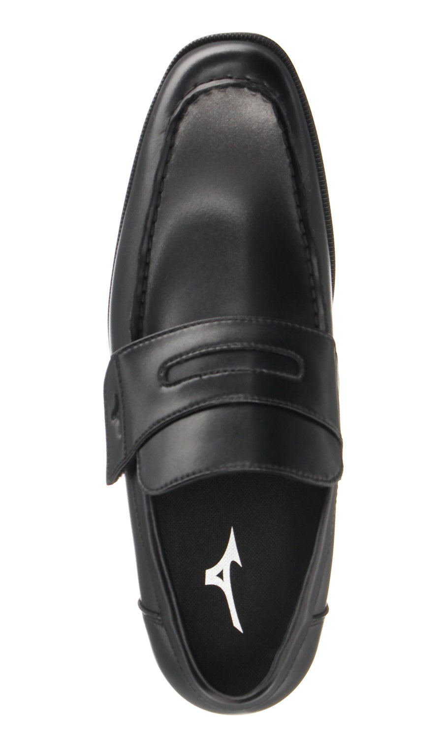 「EXLIGHT AL2」は軽量で、かかと部分にミズノ独自のソール構造「ミズノウエーブ」を搭載していることが特長です。歩行時のかかとへの衝撃を緩和する「クッション性」と、足のグラつきを抑える「安定性」を両立し、膝や腰への負担を軽減します。今回は、見た目は普通のコインローファーでありながら、ベルトタイプにすることで着脱のしやすさやフィッティングにも配慮しました。ビジネスシューズを履きなれていない方や、お仕事でシューズの脱ぎ履きをする機会が多い方など、様々なビジネスパーソンに寄り添えるシューズです。