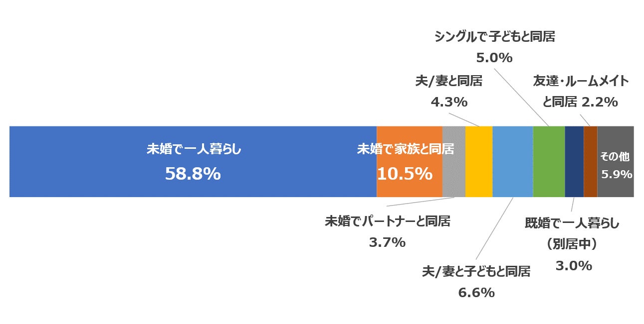 Q.あなたの婚姻状況と家族構成について教えてください(n=1053、単数回答)