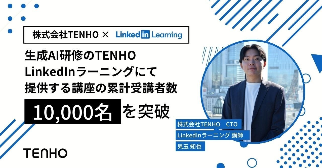生成AIに関する研修事業を展開する株式会社TENHO(本社:東京都渋谷区、代表取締役:田村 允)は、LinkedInラーニングにて公開しているコースの累計受講者数が10,000名を突破したことをお知らせいたします。