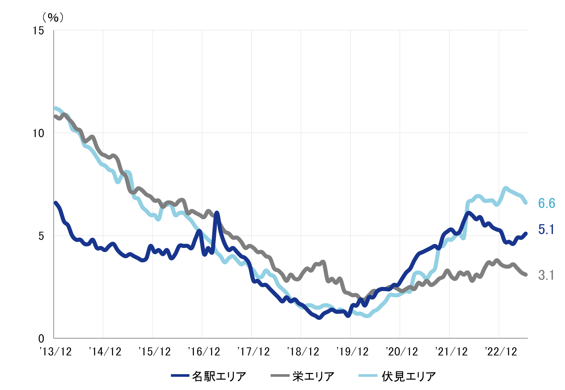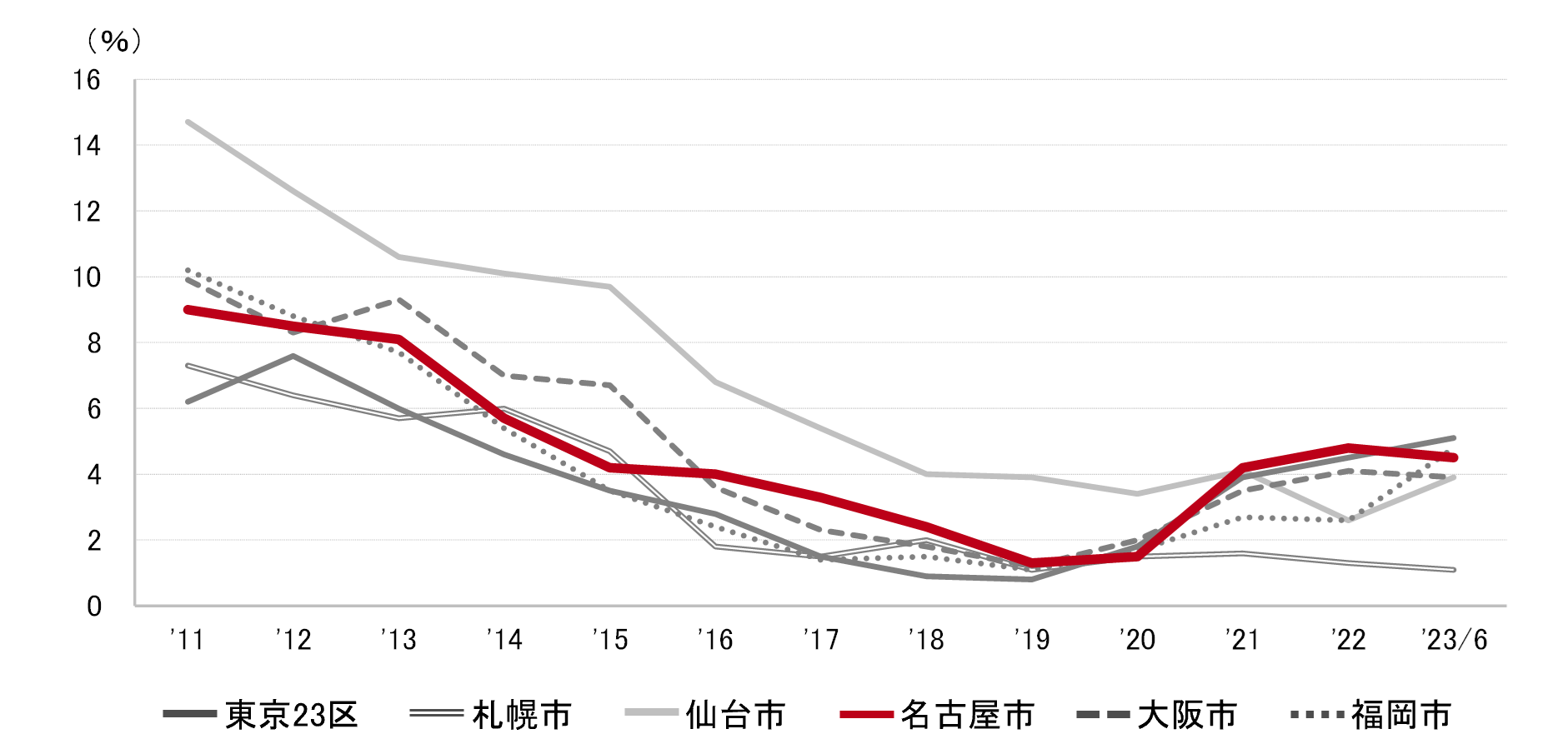 名古屋市 全規模ビル 主要エリア 空室率