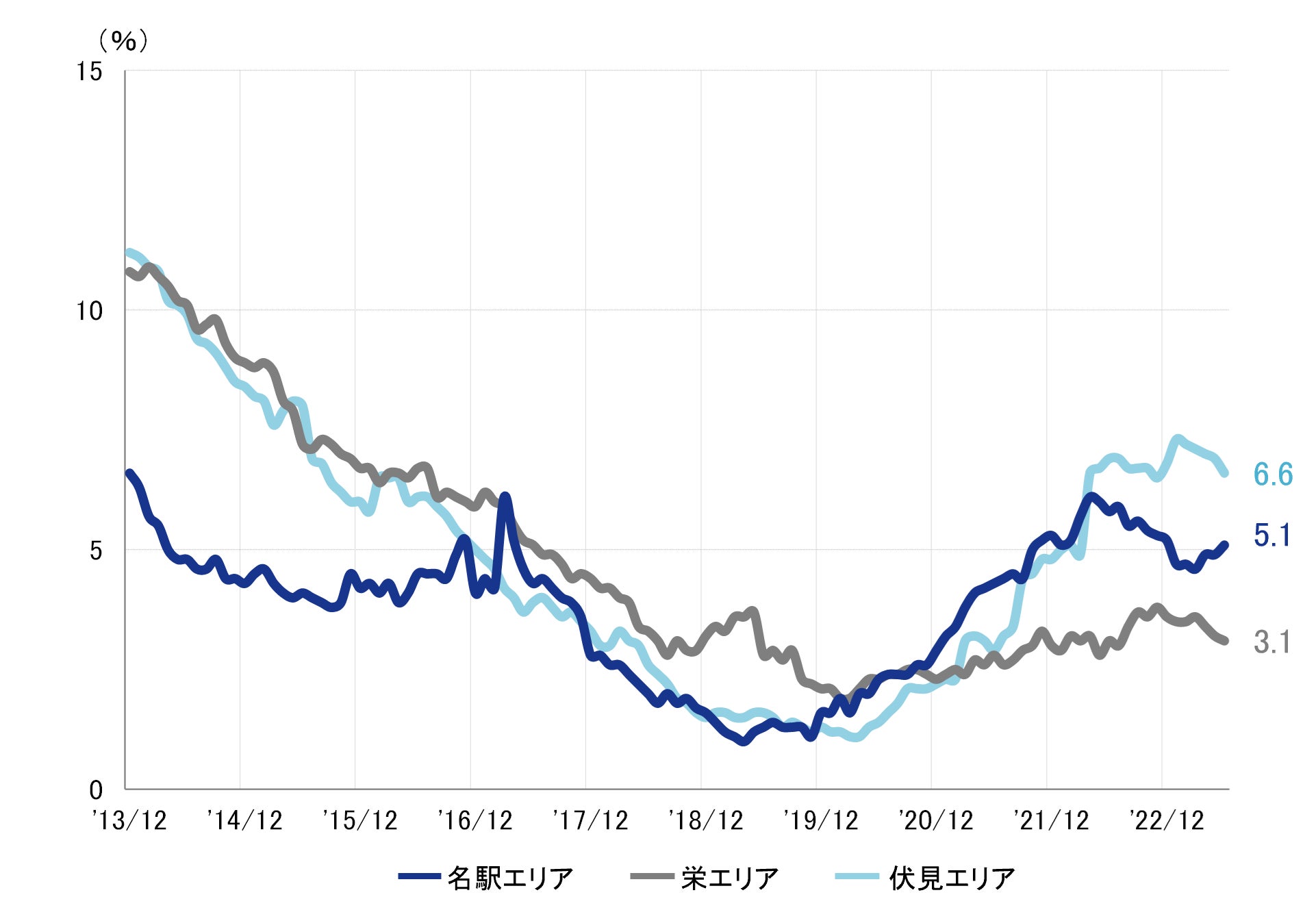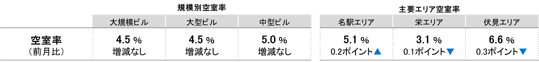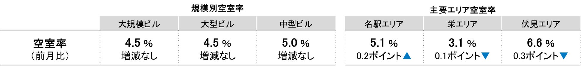 全規模ビル 主要エリア 空室率:「名駅」6ヵ月ぶりに5%台へ上昇