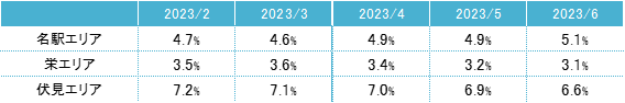 ※1:主要エリア=名古屋市名駅エリア・栄エリア・伏見エリア