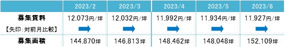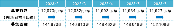 募集面積 2022年8月以来の15万坪台へ増加