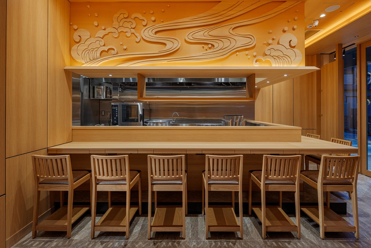 また、当店は「銀座おのでら」ブランドの強みを活かし、本年オープンした新店舗などで料理長・寺田 惠一が才能を遺憾なく発揮しコラボレーションを行っております。5月オープンとなった「麺 銀座おのでら本店」(東京・表参道)では、新たなチャレンジとしてラーメンを総合プロデュース。続いて7月オープンの「薪焼うなぎ 銀座おのでら本店」(東京・赤坂)では、薫香を纏った唯一無二のうなぎ料理を監修。「廻転鮨 銀座おのでら本店」(東京・表参道)とのスペシャルメニューコラボレーションも数年前から携わっており、薪焼きフレンチの可能性を大きく広げております。