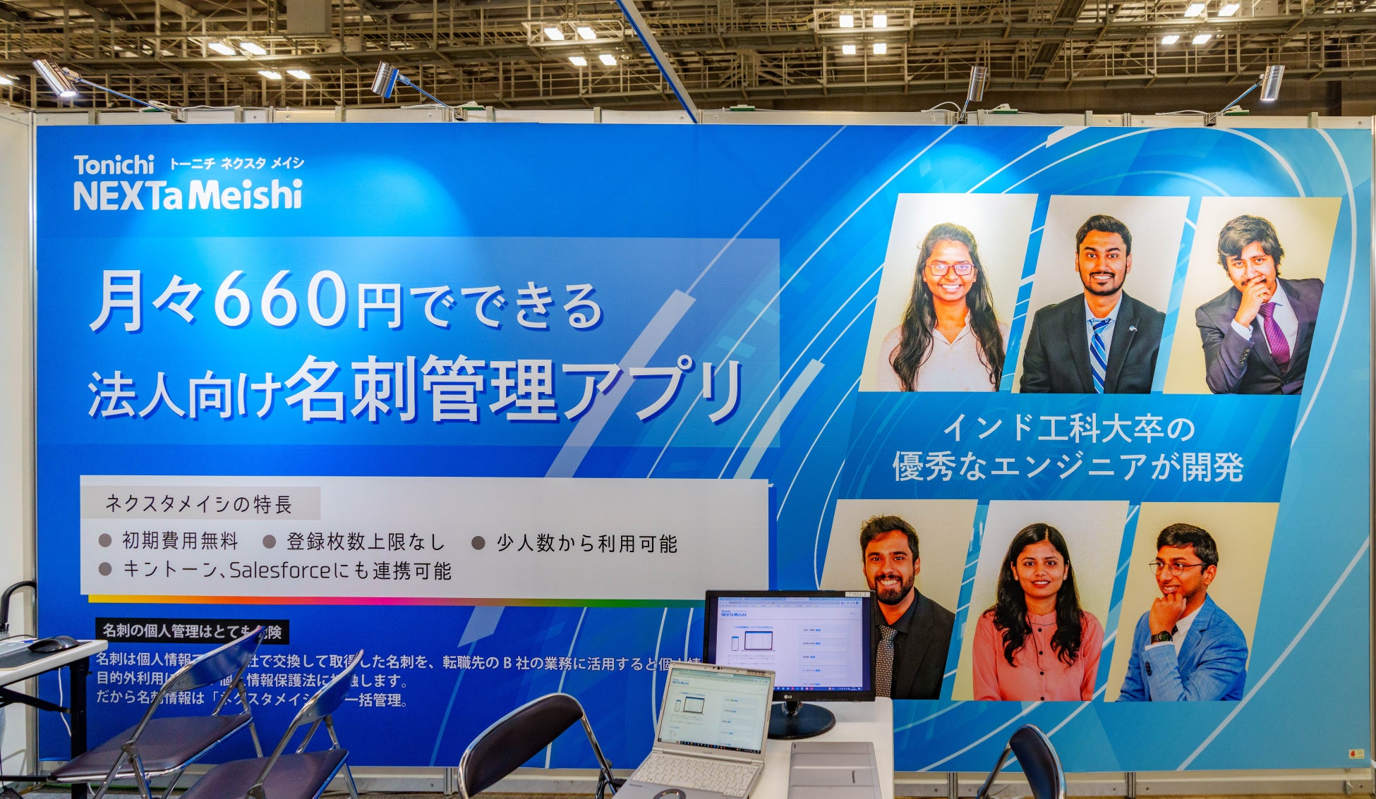 9月21日放送のテレビ東京「WBS(ワールドビジネスサテライト)」でも紹介された「ネクスタメイシ」は、月々660円で▽名刺管理▽検索▽共有▽自動名寄せ▽経歴表示▽メモ書き▽タグ付け▽オンライン名刺交換――など多様な機能を装備している利用者急増中の名刺管理アプリです。展示会では、理系大学世界最高峰の一つと称されるインド工科大学卒のエンジニアもブースに立ち、名刺管理アプリの導入を検討されている皆様の疑問・質問・課題解決のお手伝いをいたします。